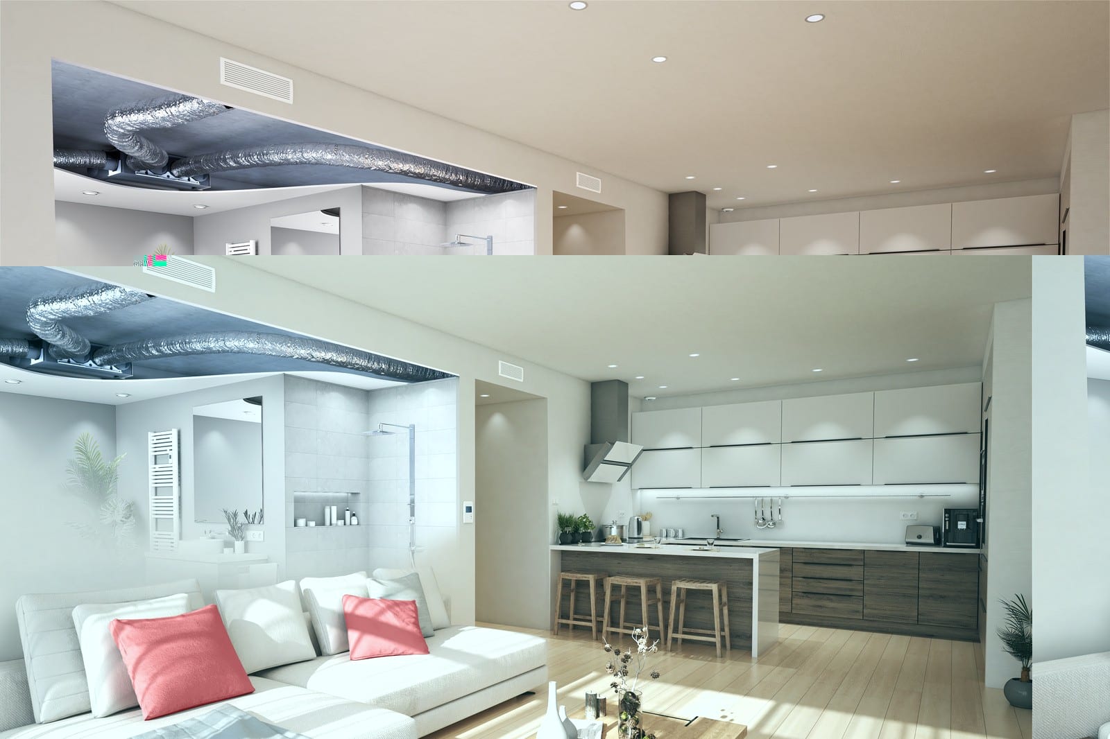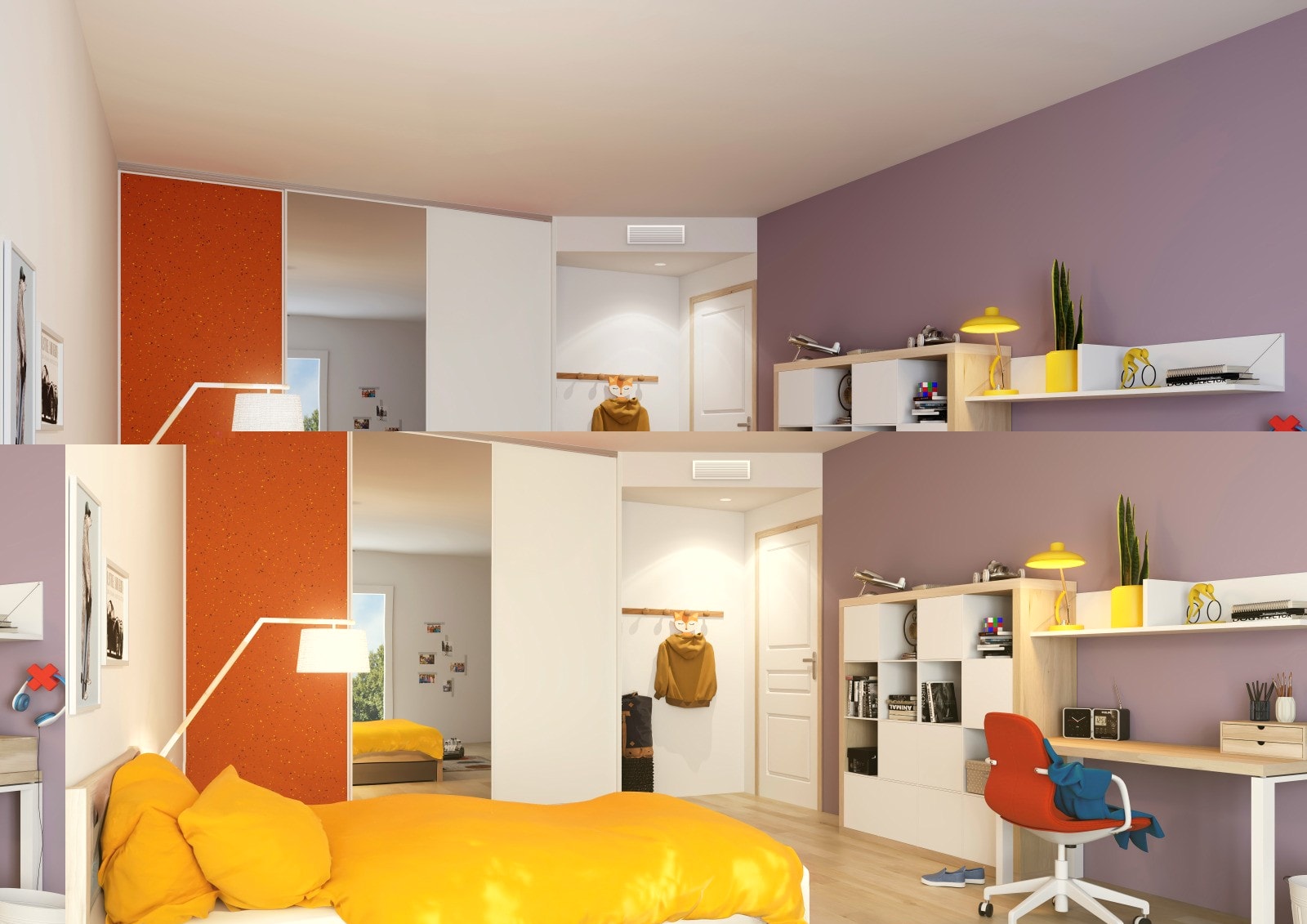 - Discrétion acoustique et visuelle grâce à son intégration en faux-plafond