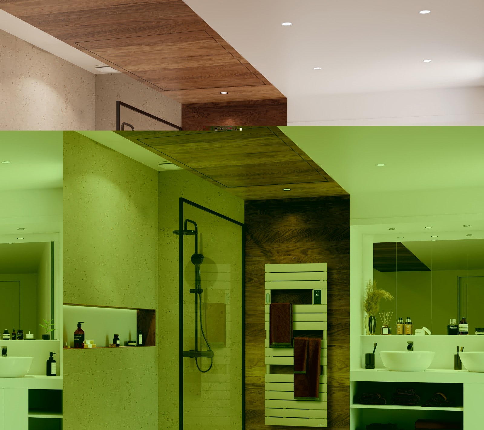 - Discrétion acoustique et visuelle grâce à son intégration en faux-plafond