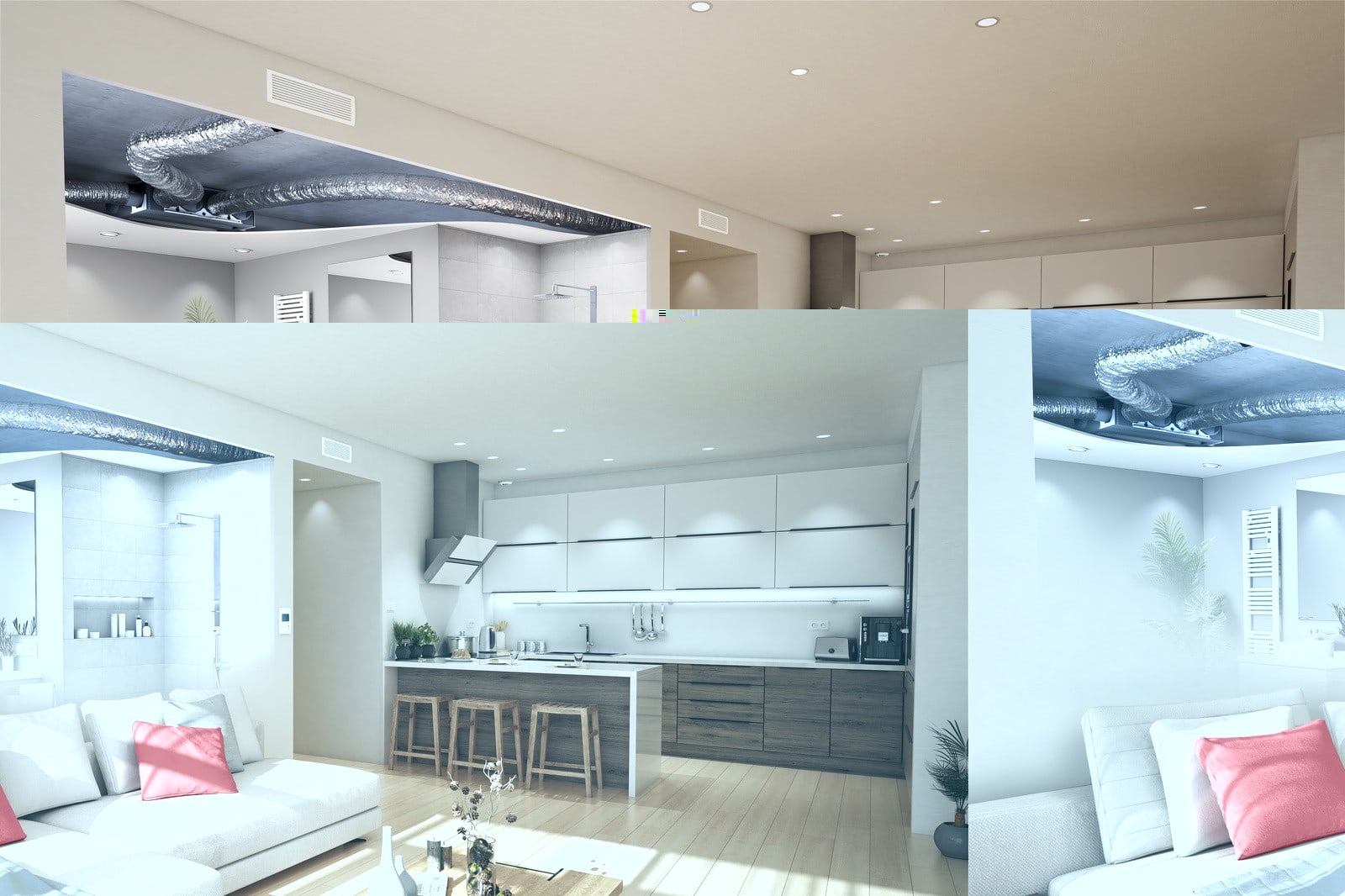 • Discrétion acoustique et visuelle grâce à son intégration en faux-plafond