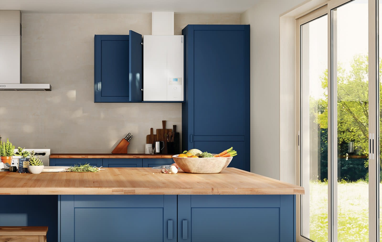 Une chaudière compacte de 40 cm de large seulement et de moins de 30 kg pour une intégration facilitée.