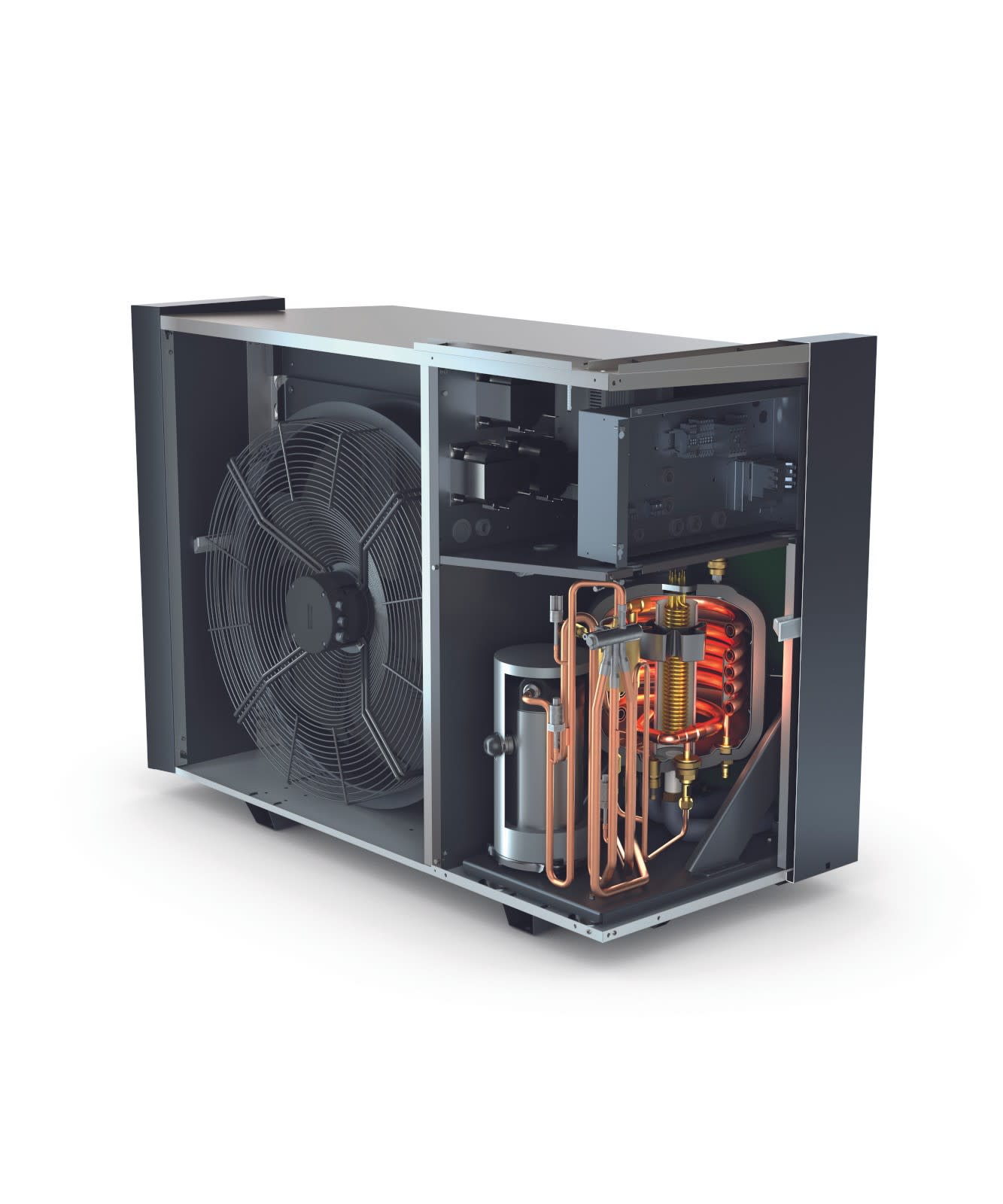 Elle s'intègre parfaitement dans l’habitat grâce à son confort acoustique qui en fait l’une des pompes chaleur les plus silencieuses du marché et qui plus est, elle est fiable dans le temps grâce à sa conception hydraulique et ses finitions en métal robustes