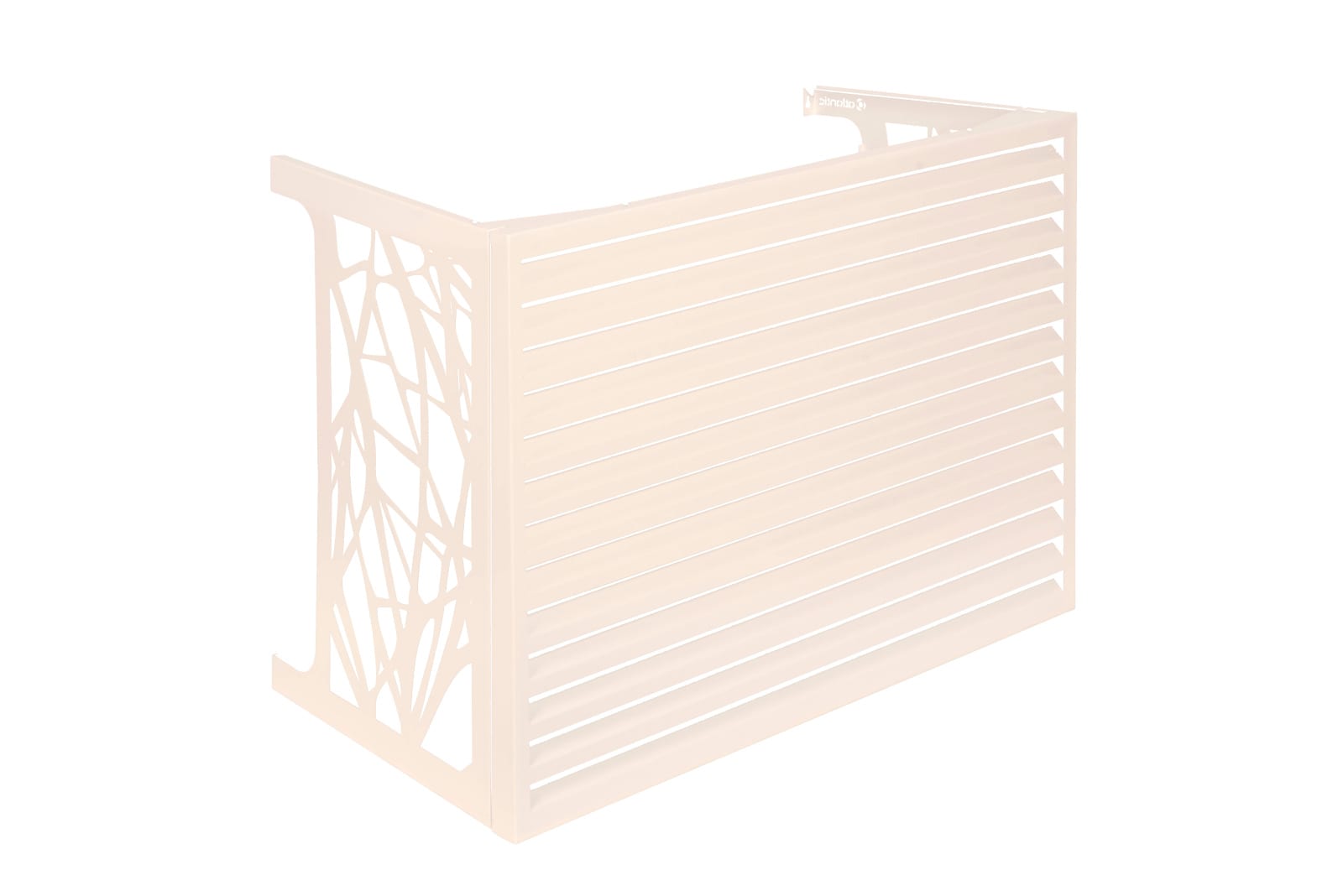 La structure en aluminium se monte simplement et rapidement. Afin de s’adapter au mieux aux besoins de l’installation, il est possible de combiner deux Cache-clim en hauteur dans le cas d’une unité extérieure à double ventilateurs ou en longueur pour dissimuler deux groupes extérieurs mitoyens.