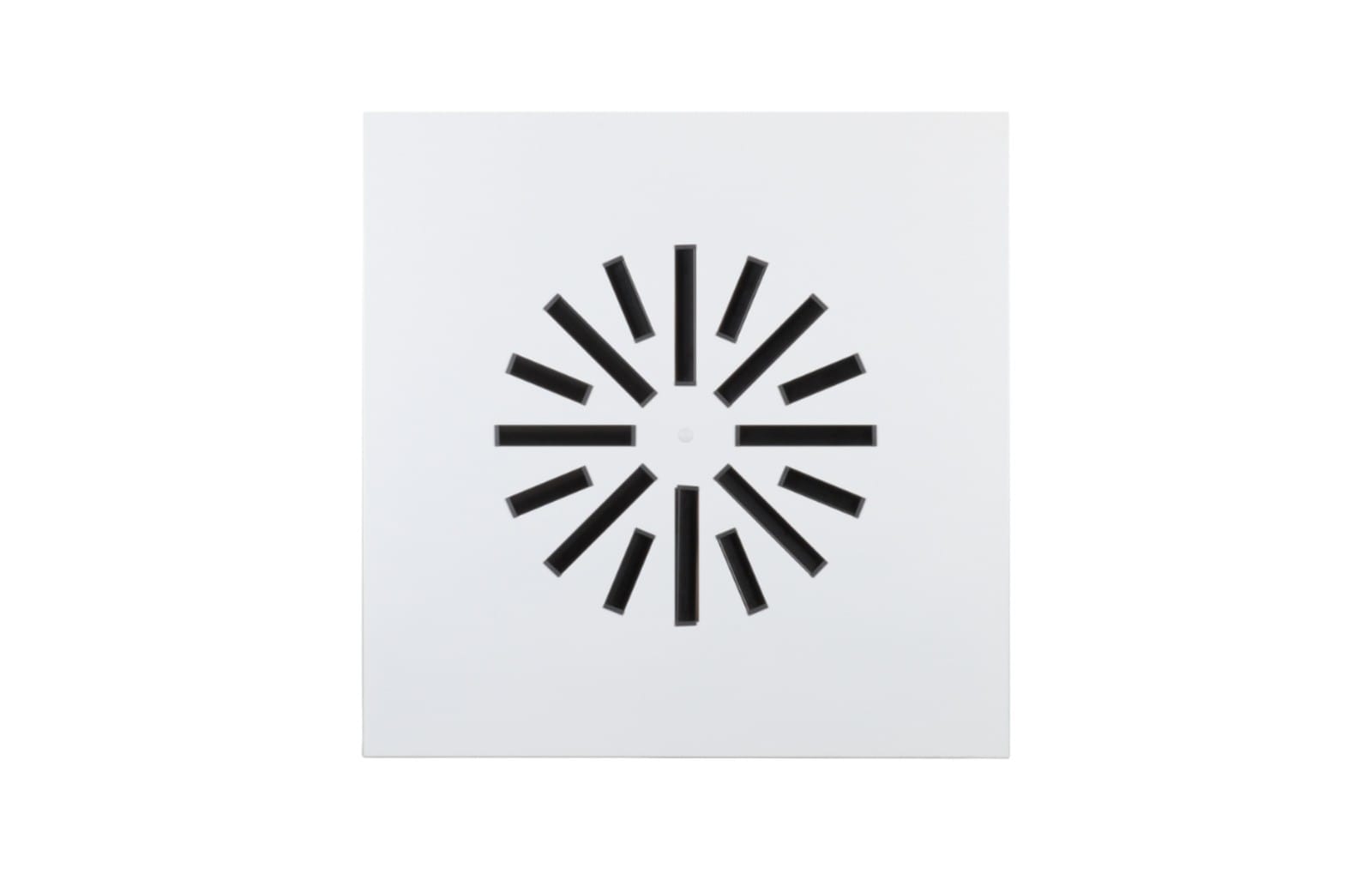 Diffuseur fabriqué en acier galvanisé et ailettes de déflexion sectorisées en aluminium noir ou blanc.