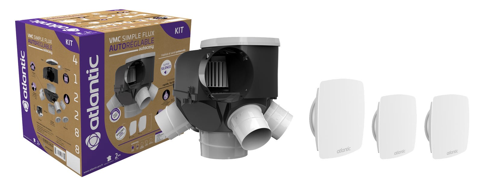 Atlantic Clim & Ventil - Kit Autocosy VMC autoréglable 4 sanitaires (3 bouches LINES) - 412288