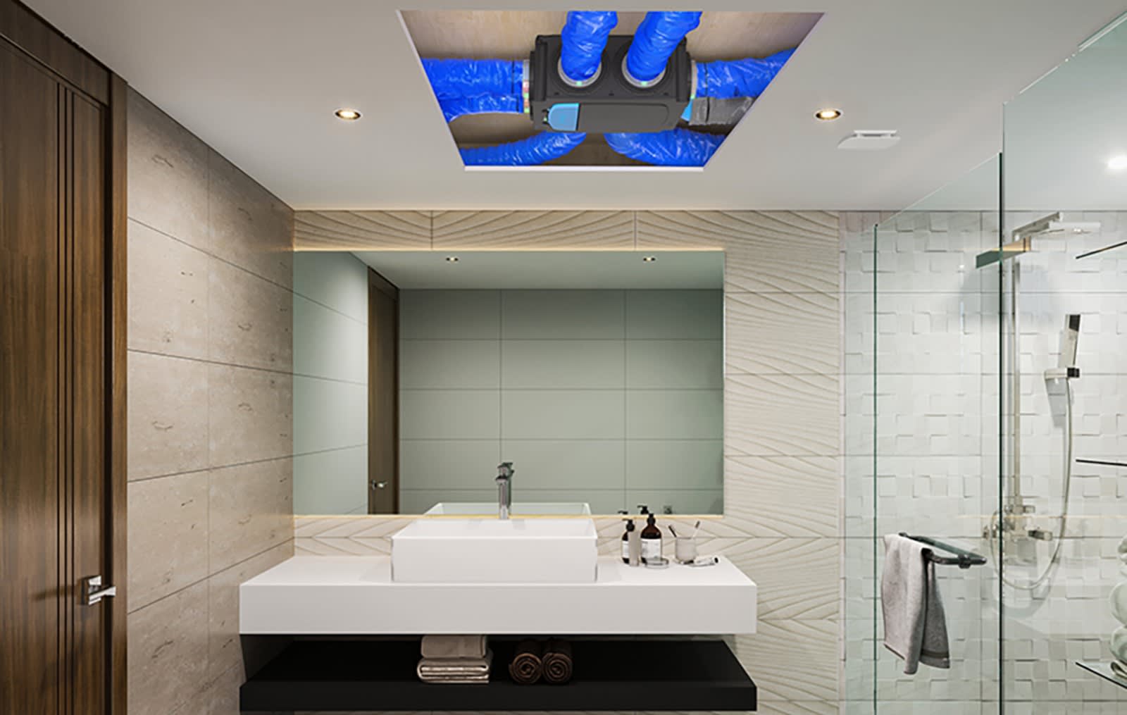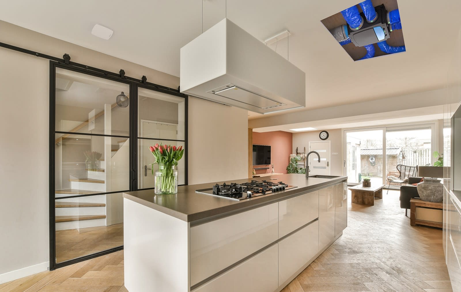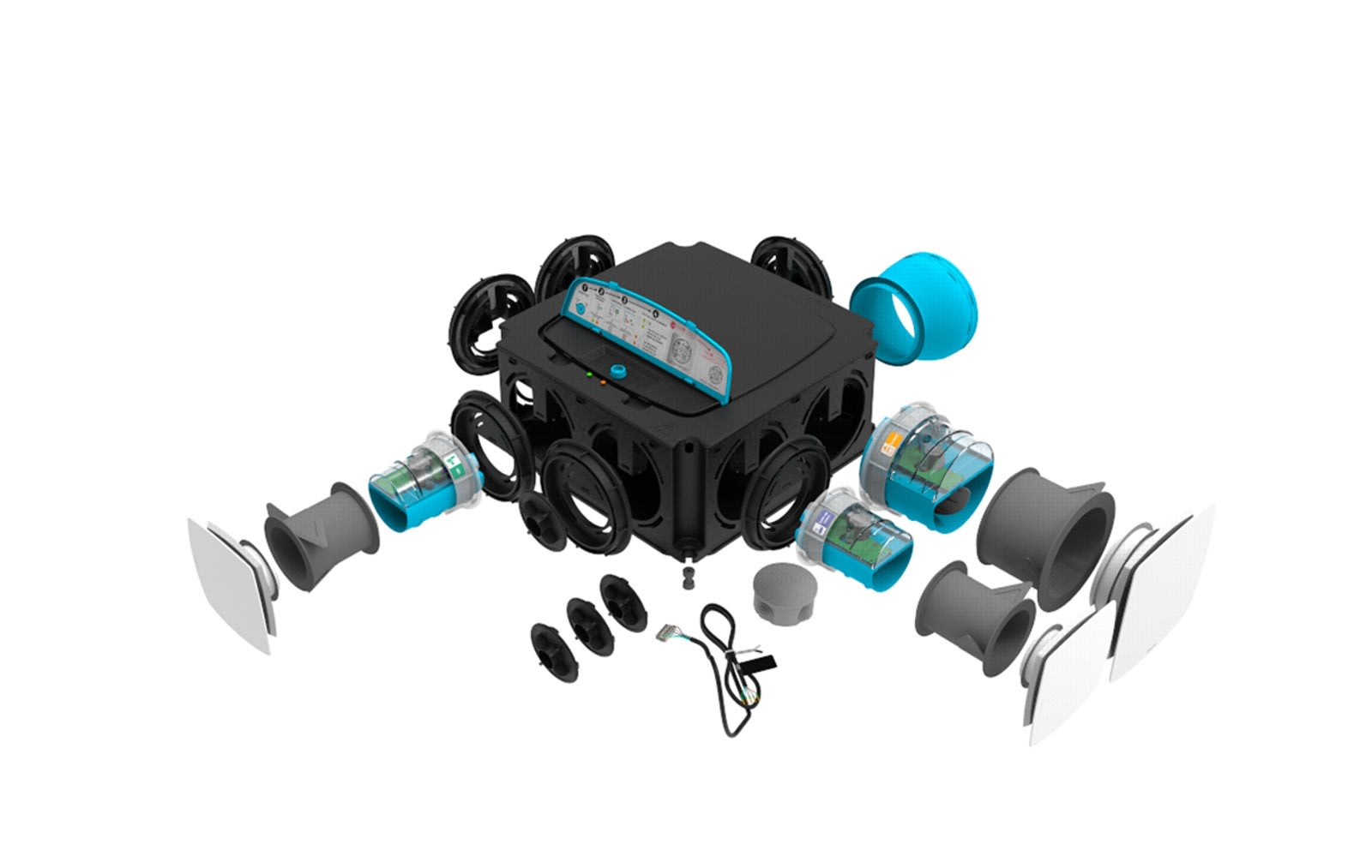 Pression ajustée jusqu'à 250 Pascal. Piquages E-Twist &_ Go assurant une régulation de pression sur-mesure par pièce, avec assistant visuel par LED et rapport de bon fonctionnement pour une conformité totale