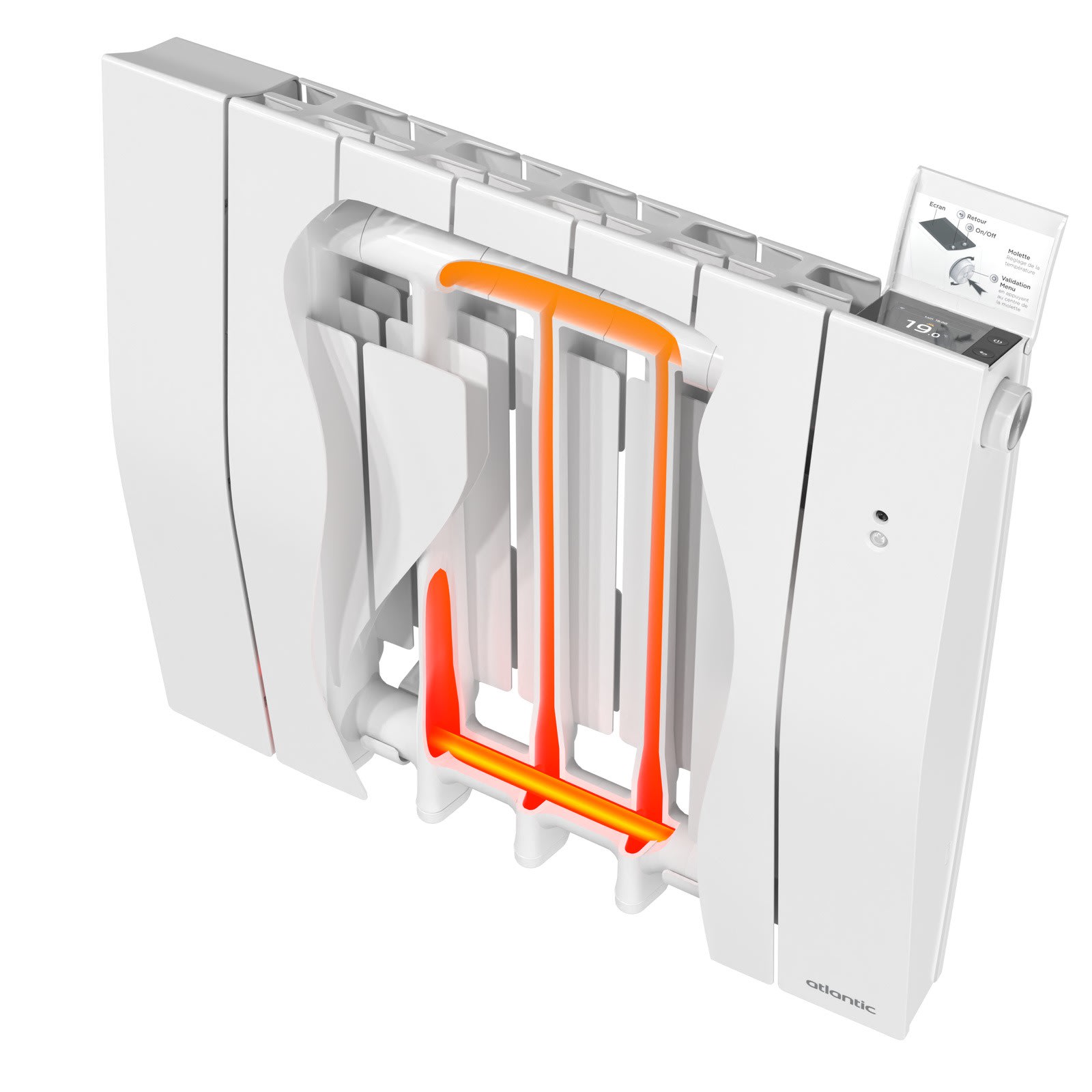 Corps de chauffe avec fluide thermo-conducteurNouveau boîtier de commande ergonomiqueCoefficient d’aptitude : 0,1NF 3 étoiles œilPlus de servicesGarantie 2 ans piècesGarantie Express pièces et produitIndemnité dépannageSAV 5/7 en FrancePlus de facilité de poseModèle vertical : Gabarit de poseModèle horizontal et bas : Support mural servant de gabarit pour une pose rapidePour les trois modèles : Packaging 0% polystyrène pour une évacuation desdéchets simplifiéePlus de confortDiffuse une chaleur douce inertielleNouveau boitier de commande ergonomique équipé de fonctions d’accessibilité adaptées aux malvoyants et aux handicapés moteursRadiateur commandable et programmable à distance grâce à l’application Atlantic CozytouchPossibilité de jumeler les appareils connectés entre eux (le Hub Cozytouch est nécessaire) pour piloter une pièce en un gestePlus d'économiesGrâce aux fonctions intelligentes de l'appareil :ConnectivitéPilotage IntelligentDétection d’occupationDétection automatique d’ouverture et fermeture de fenêtreProgrammation personnalisable avec assistantde planificationPlus de designNouveau design plus compact et épuré. Galapagos horizontal 1 000 W : seulement 60 cm de large soit 17 cm de moins que la version précédente de Galapagos3 formats : Horizontal, Vertical et Bas2 Couleurs : Blanc (RAL 9016) et Gris étoilé (RAL 2100)PuissancesDe 750W à 2000W