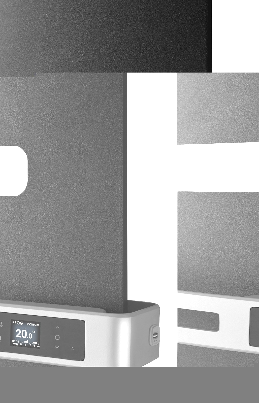Boîtier de commande digital, affichage de l’heure et de la météo (bridge Cozytouch nécessaire).