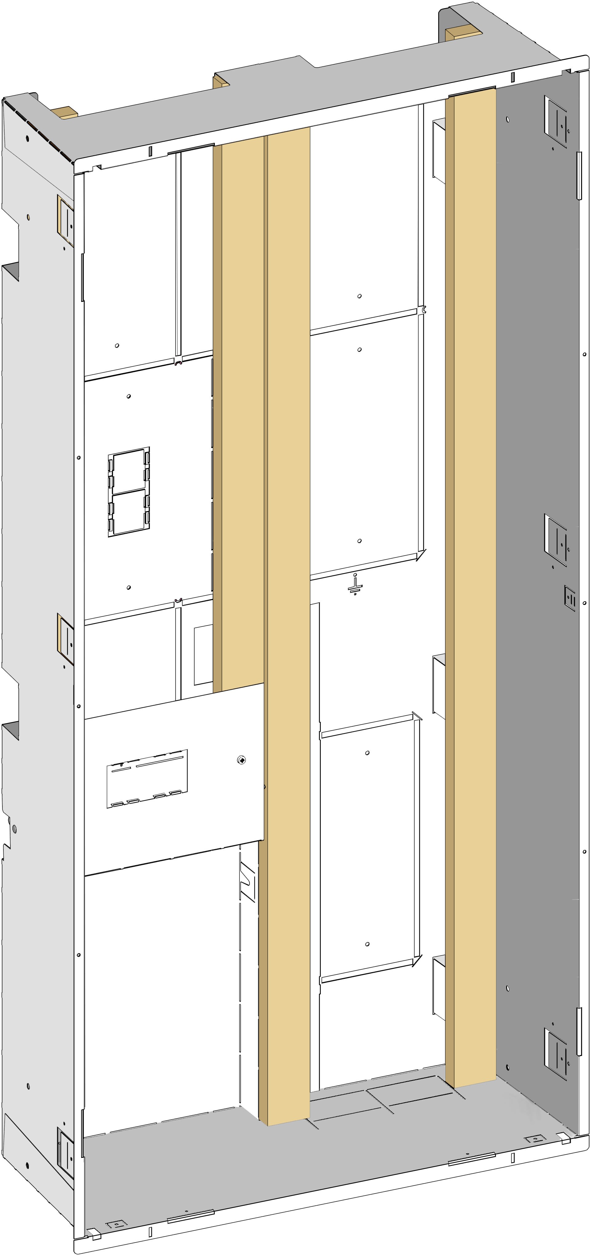 Solution d'habillage pour la gaine technique électrique : bac d'encastrement avec volume attenant 13 Modules et 2 travées pour tableaux d'abonnés.