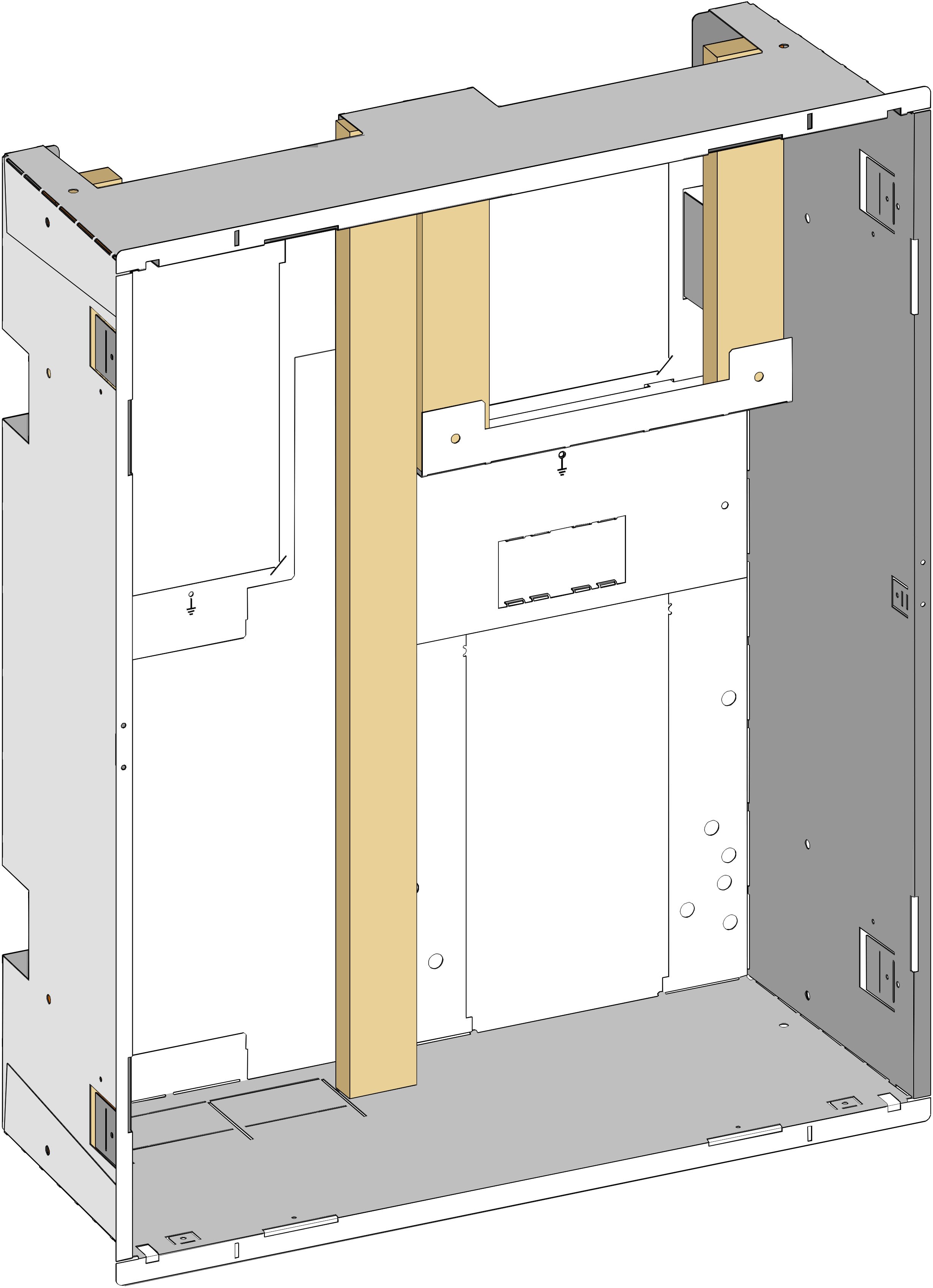 Bac encastré volume attenant. Le bac encastré VABL est un modèle compact. Il dispose de trous pré percés permettant de fixer dans le bac un coffret de communication de taille standard et universelle. Des obturateurs ainsi qu'un support de prises intégré permettent d'installer deux prises de courant 45 x 45 mm positionnables au-dessus du volume attenant.