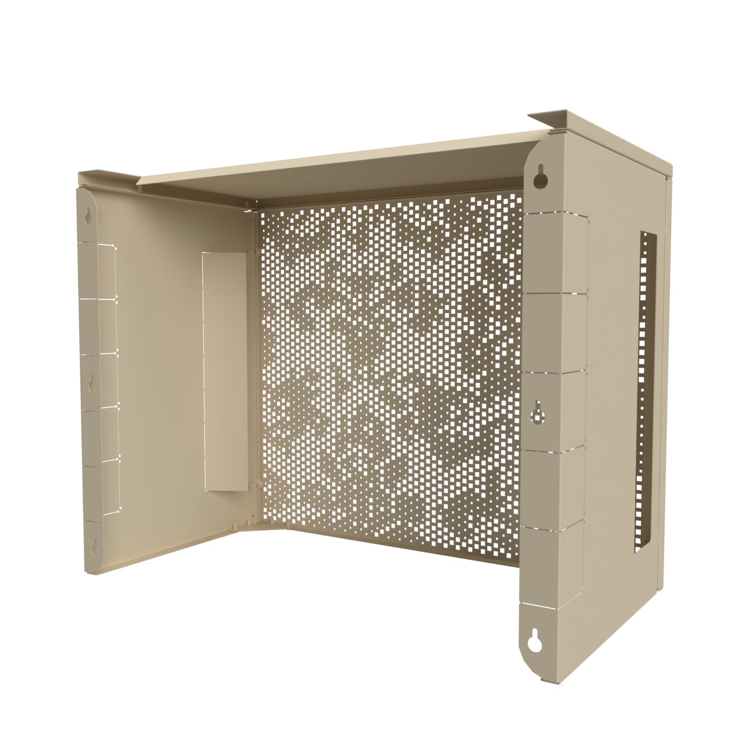 Habillage de ventilation gamme initial taille 1 avec capot haut - Crème RAL 1015. L'habillage est composé d'une face avant perforée (baroque), d'un côté gauche, d'un côté droit et d'un côté droit et d'un capot haut.