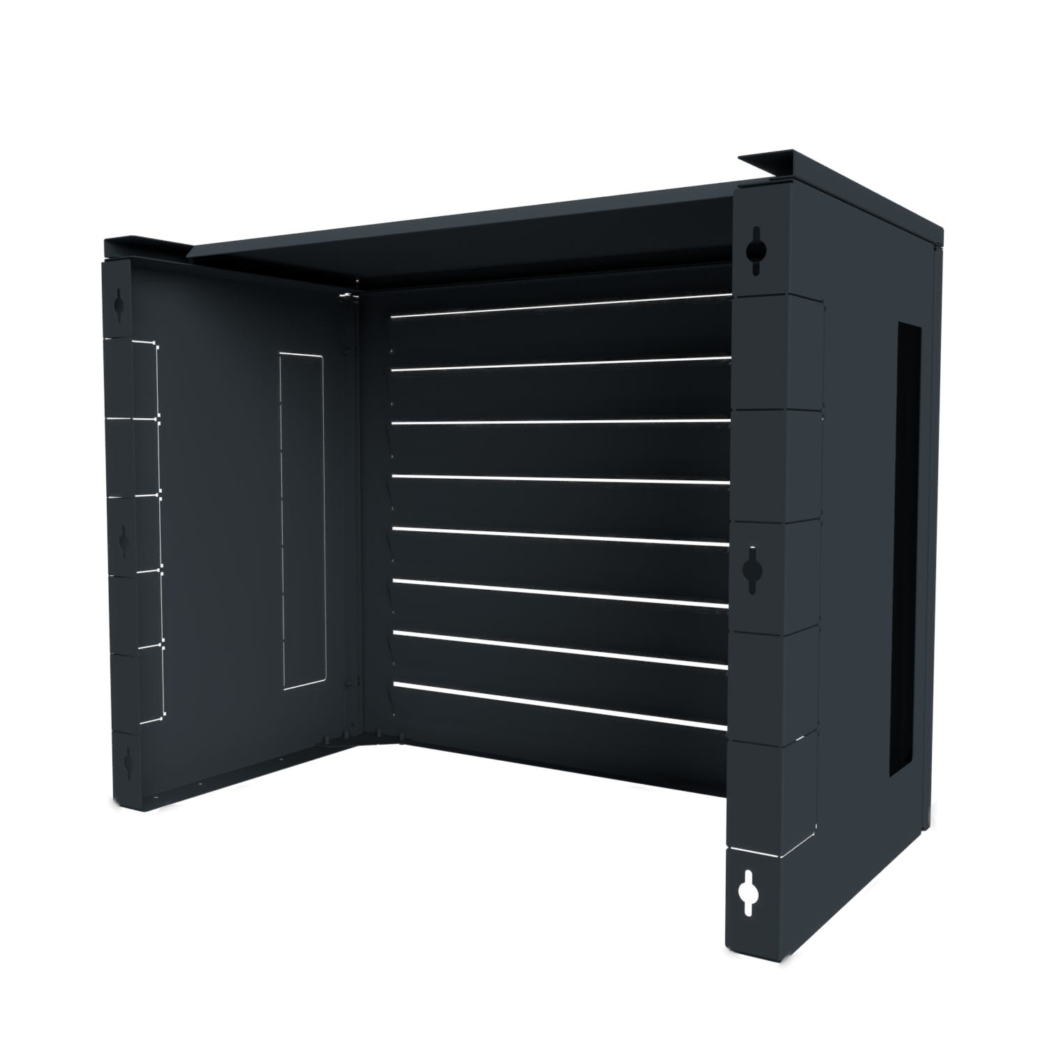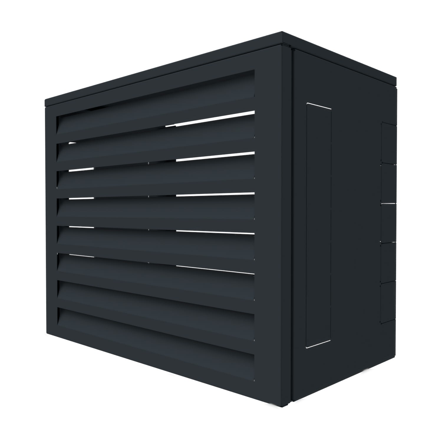 Habillage de ventilation gamme initial taille 1 avec capot haut - Gris anthracite RAL7016. L'habillage est composé d'une face avant perforée (façade ventelles), d'un côté gauche, d'un côté droit et d'une traverse en bas.