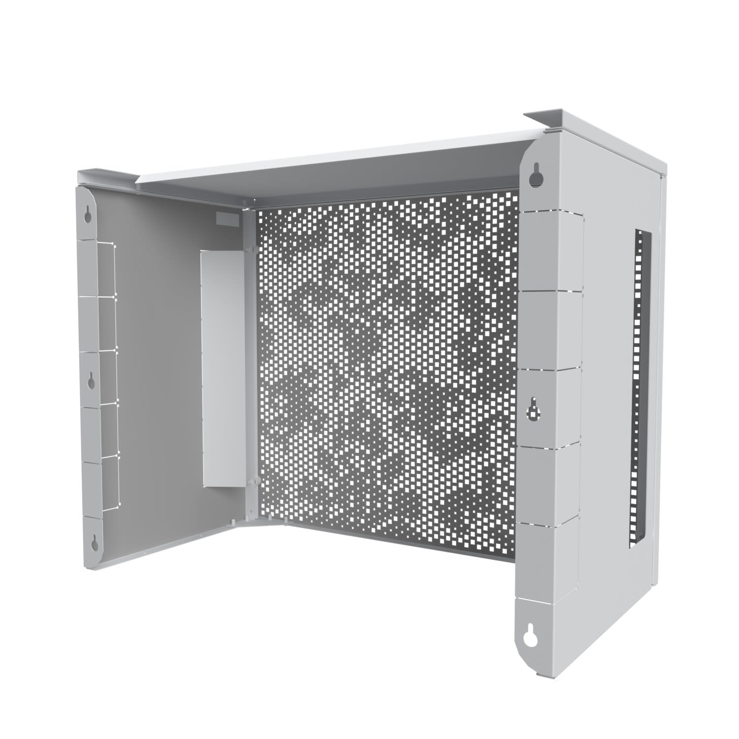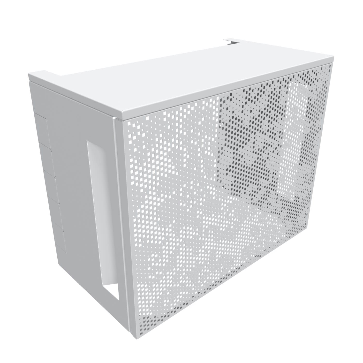 Habillage de ventilation gamme Initial en taille 2 - Blanc RAL 9010. L'habillage est composé d'une face avant perforée (style baroque), d'un côté gauche, d'un côté droit et d'un capot haut.