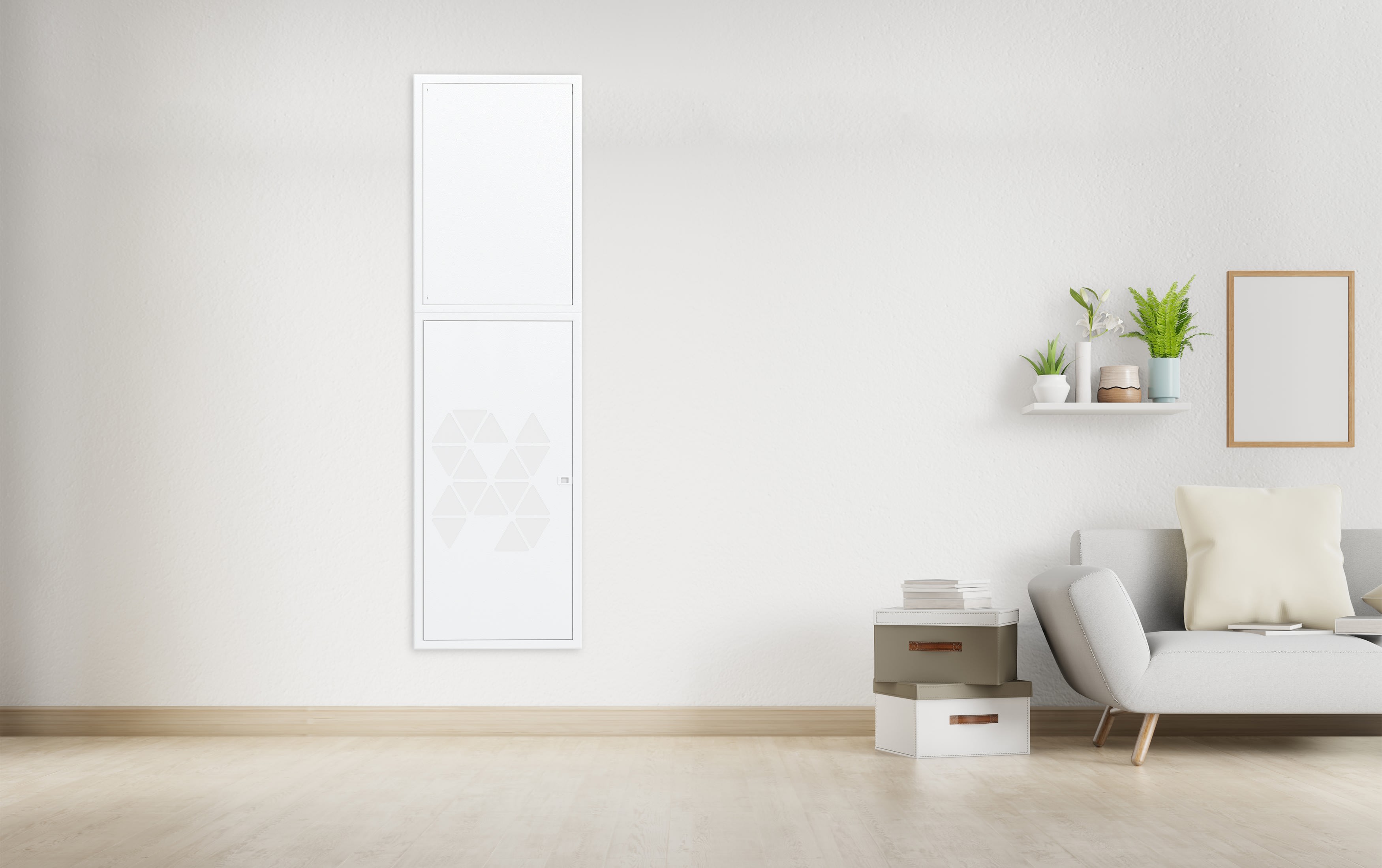 Solution d'habillage pour la gaine technique électrique : porte et partie démontable pour bac d'encastrement.