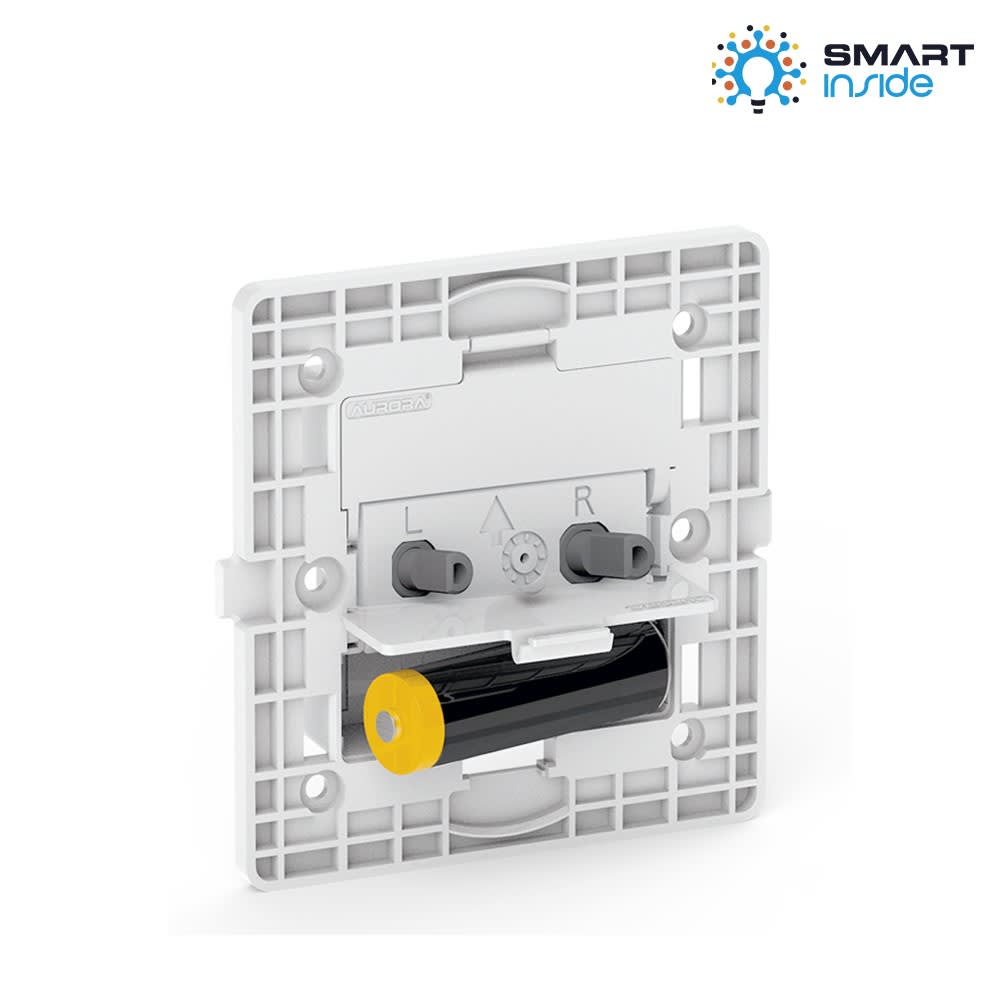 Variateur rotatif à pile Zigbee AOne. Nécessite une boite d'encastrement standard de 25 mm et peut contrôler sans fil les dispositifs 'Smart Inside'. Un mode secondaire vous permet également de contrôler la personnalisation des couleurs, le RGB et l e défilement des ambiances.