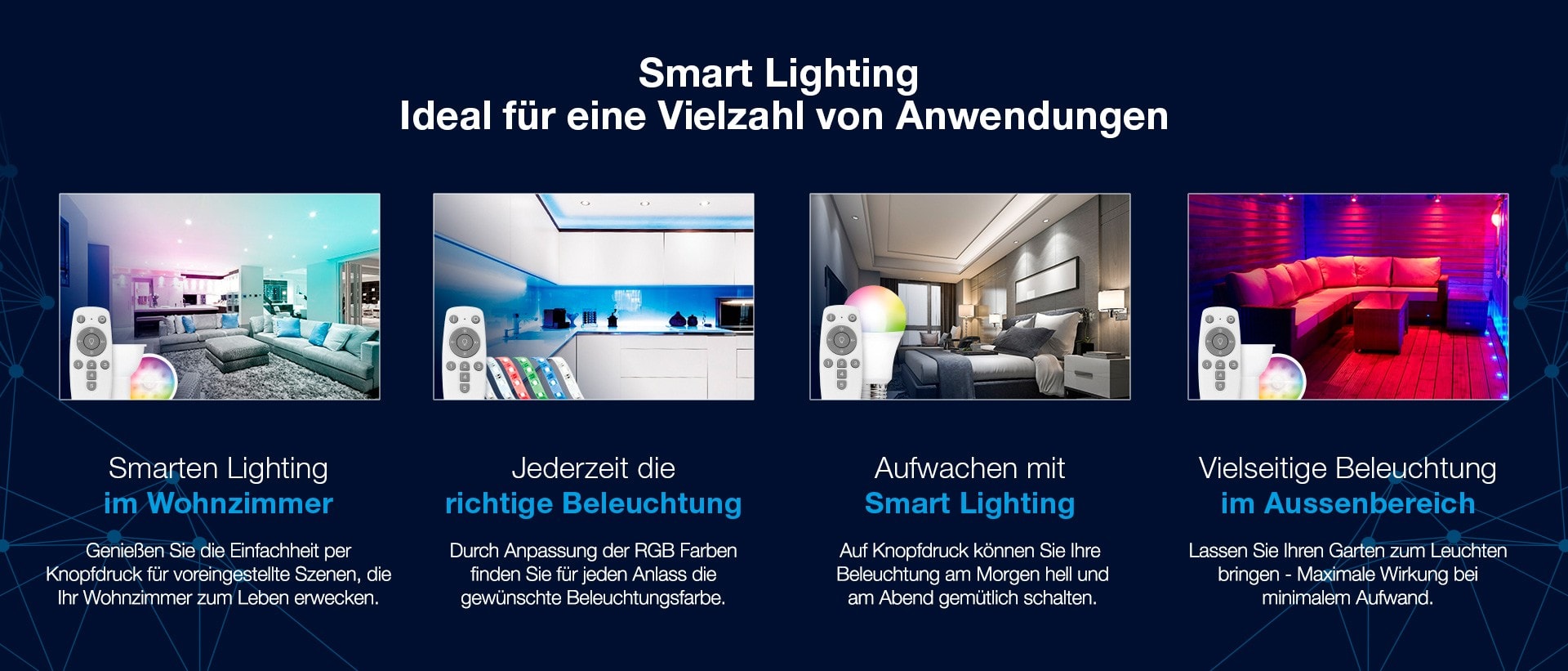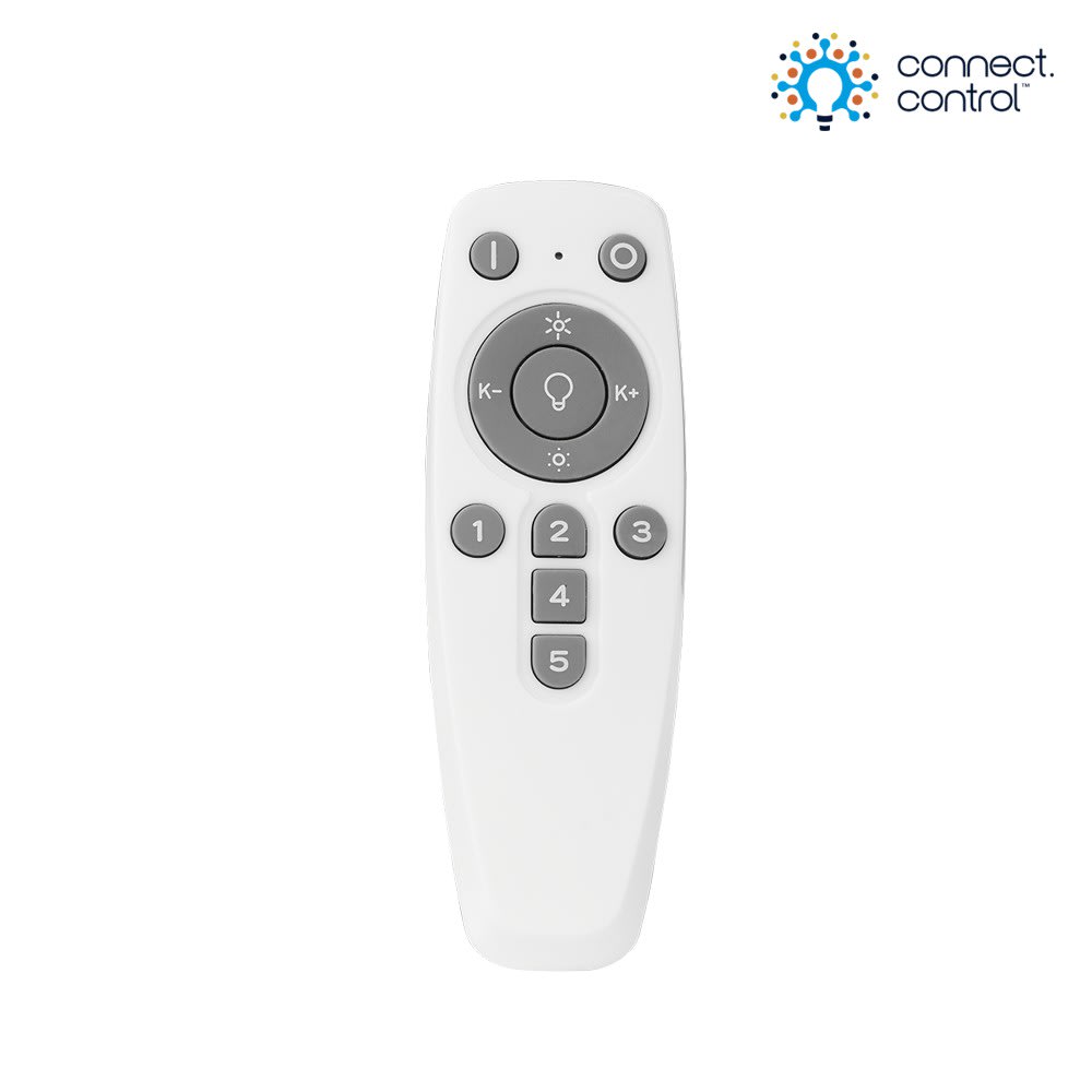 Télécommande à utiliser avec les kits connect.control Ne nécessite pas de Hub 6 couleurs RGB préprogrammées : rouge, jaune, vert, cyan, bleu, magenta 5 scénarios d'éclairage préprogrammés Couleur des blancs réglable du plus chaud au plus froid Mise à niveau disponible pour le contrôle via smartphones et tablettes Garantie 3 ans