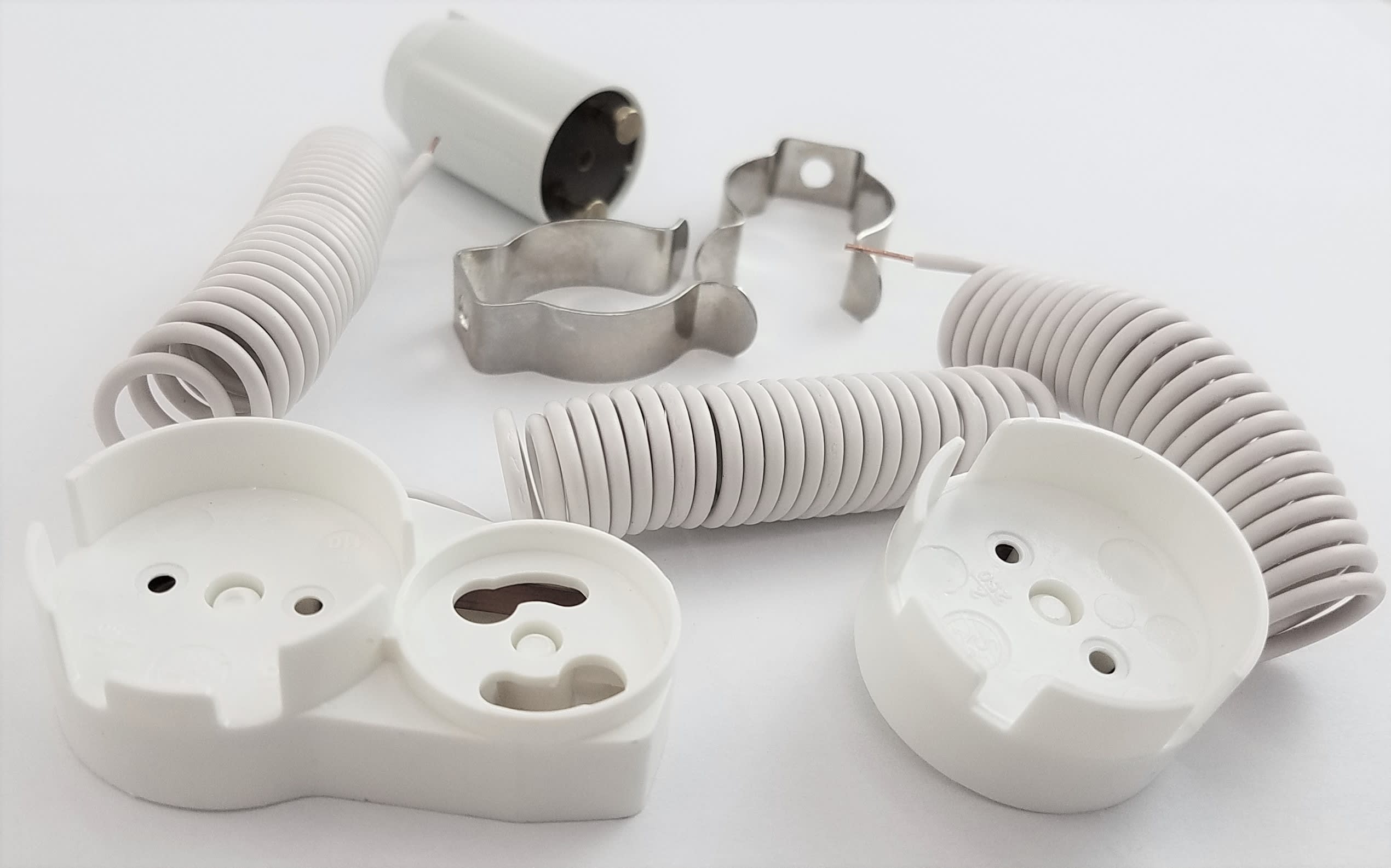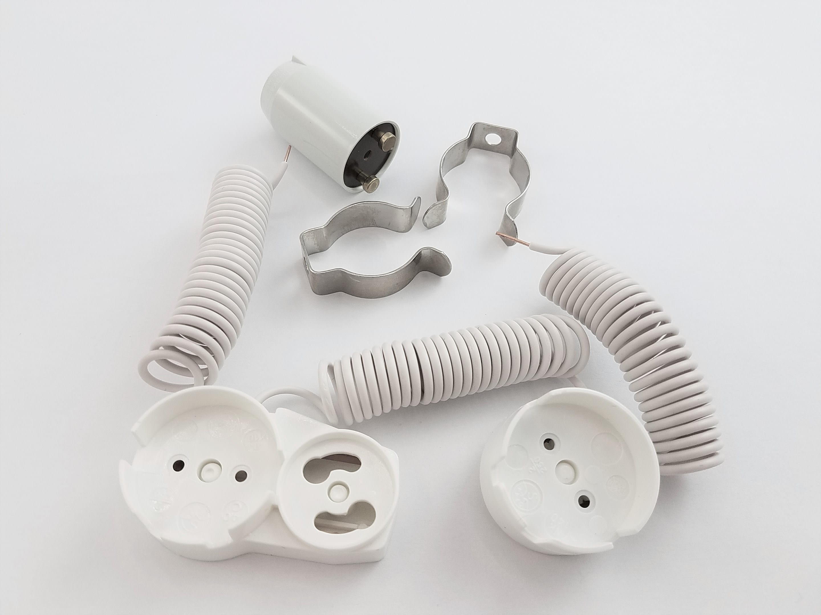 Kit précablé complet pour tube fluo G13/T8-T12 de puissance 14 à 30W. Inclus : clips, douilles, starter ST111