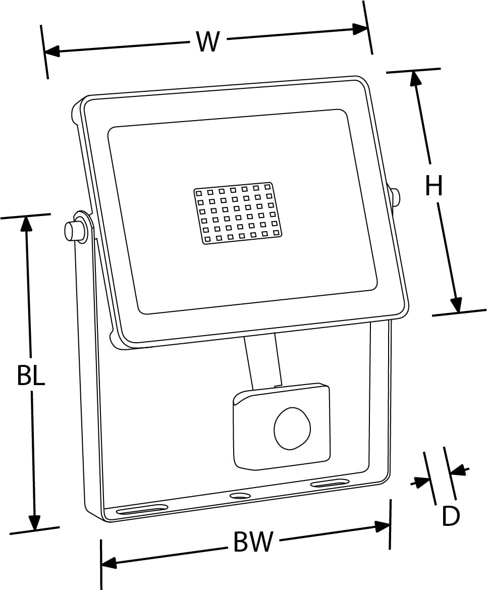 Projecteur LED IP65 avec design ultra-fin et capteur infrarouge réglable Détection infrarouge jusqu' à 10m de portée et 120° de rayon Sensibilité à la lumière, rayon de détection et temporisation réglables Disponible en finition noir et blanc Précâblé avec 800mm de câble Protection contre les surtensions de 1,5 kV Garantie 3 ans