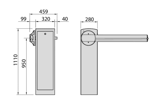 Barrière électromécanique Inox 230 V avec moteur asynchrone triphasé et onduleur, permettant de gérer des passages de da 1,7 à 5 m.Produit idéal pour les installations sur les zones à fréquence de passage élevée. Version sans ressort.