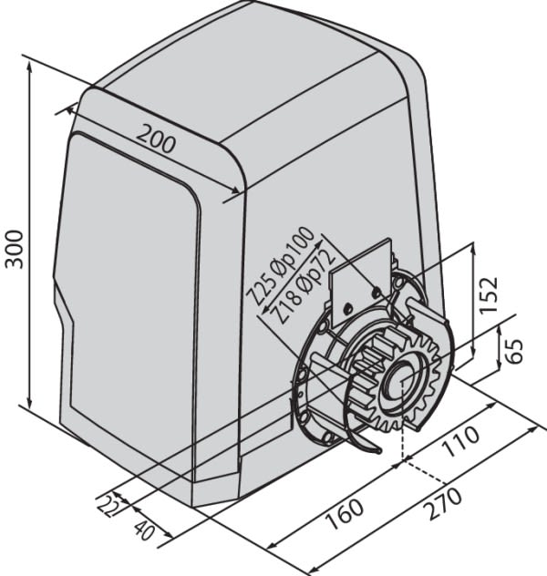 Moteur 24 V pour portails coulissants jusqu'à 1000 kg. Vitesse du vantail 9 m/min.