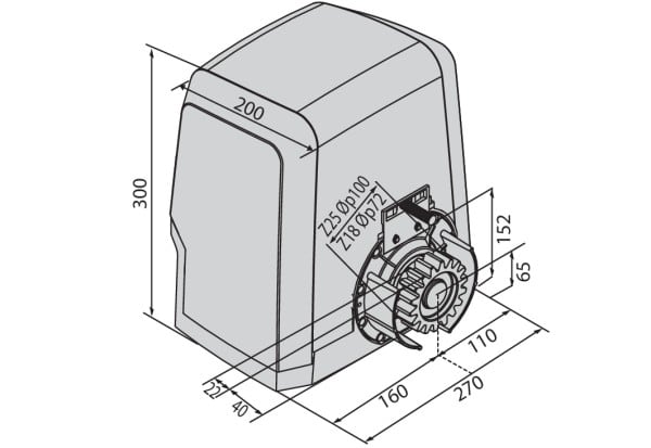 Opérateur 24 V pour portails coulissants jusqu'à 500 kg. Vitesse à vide 25 m/min.