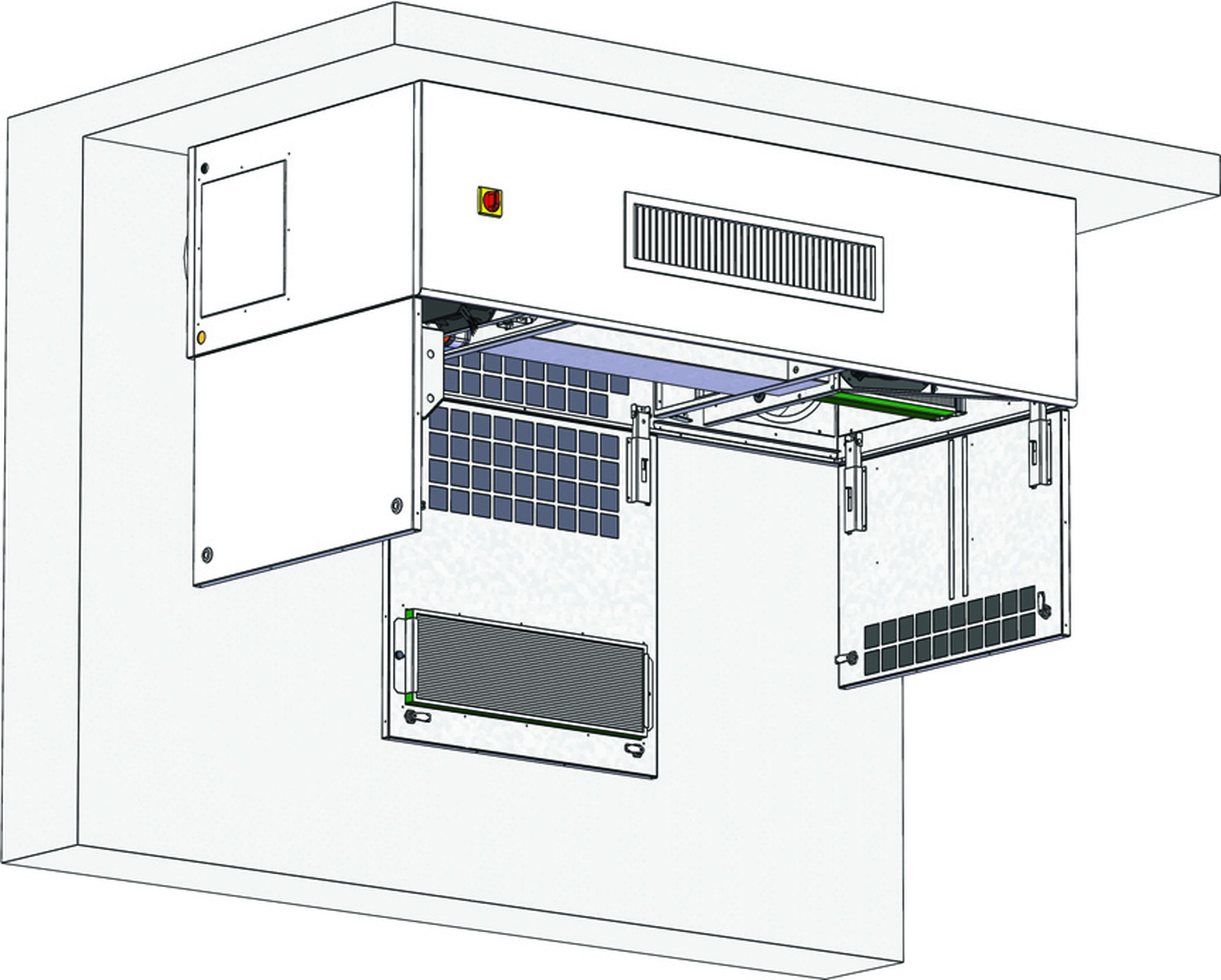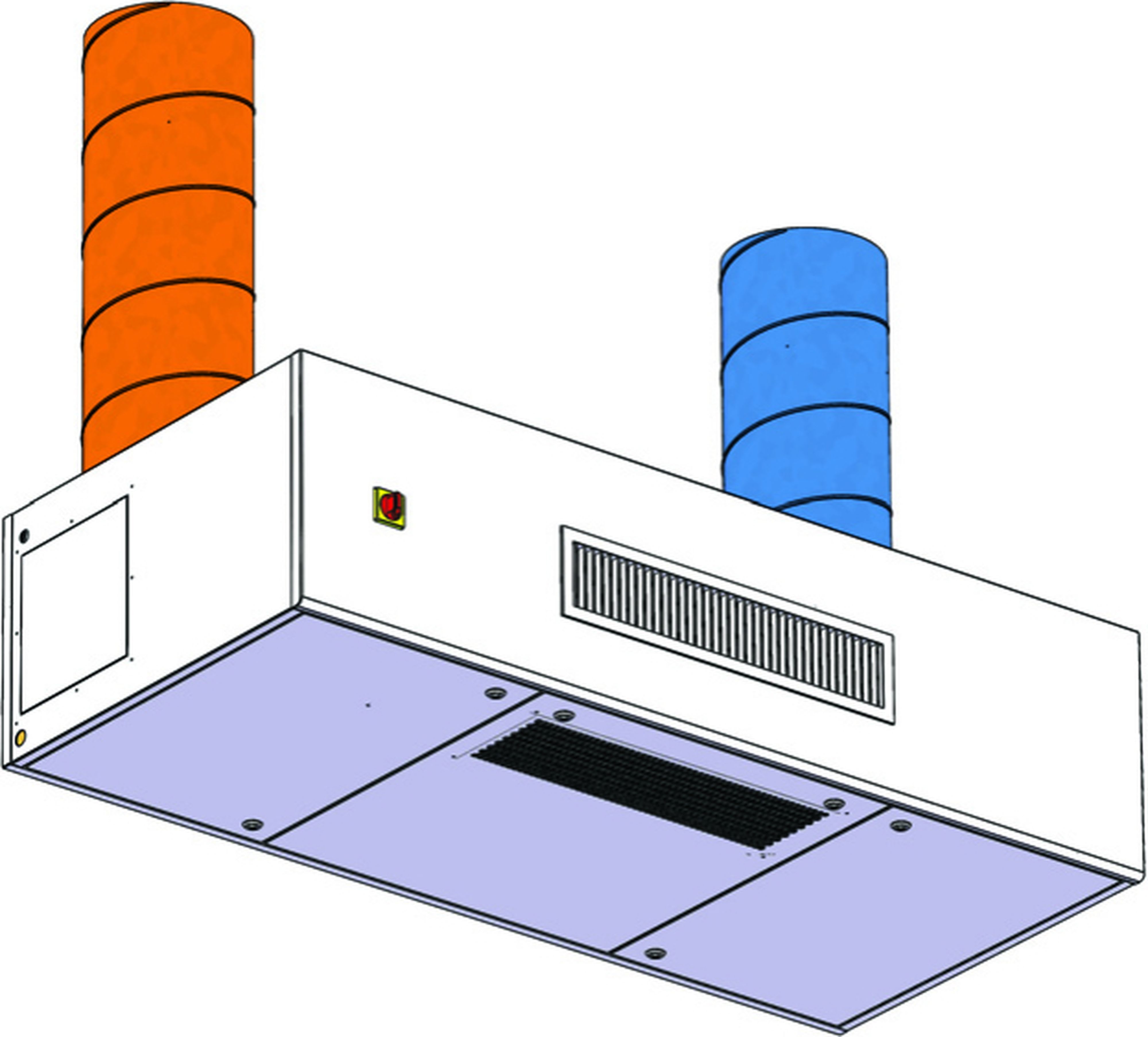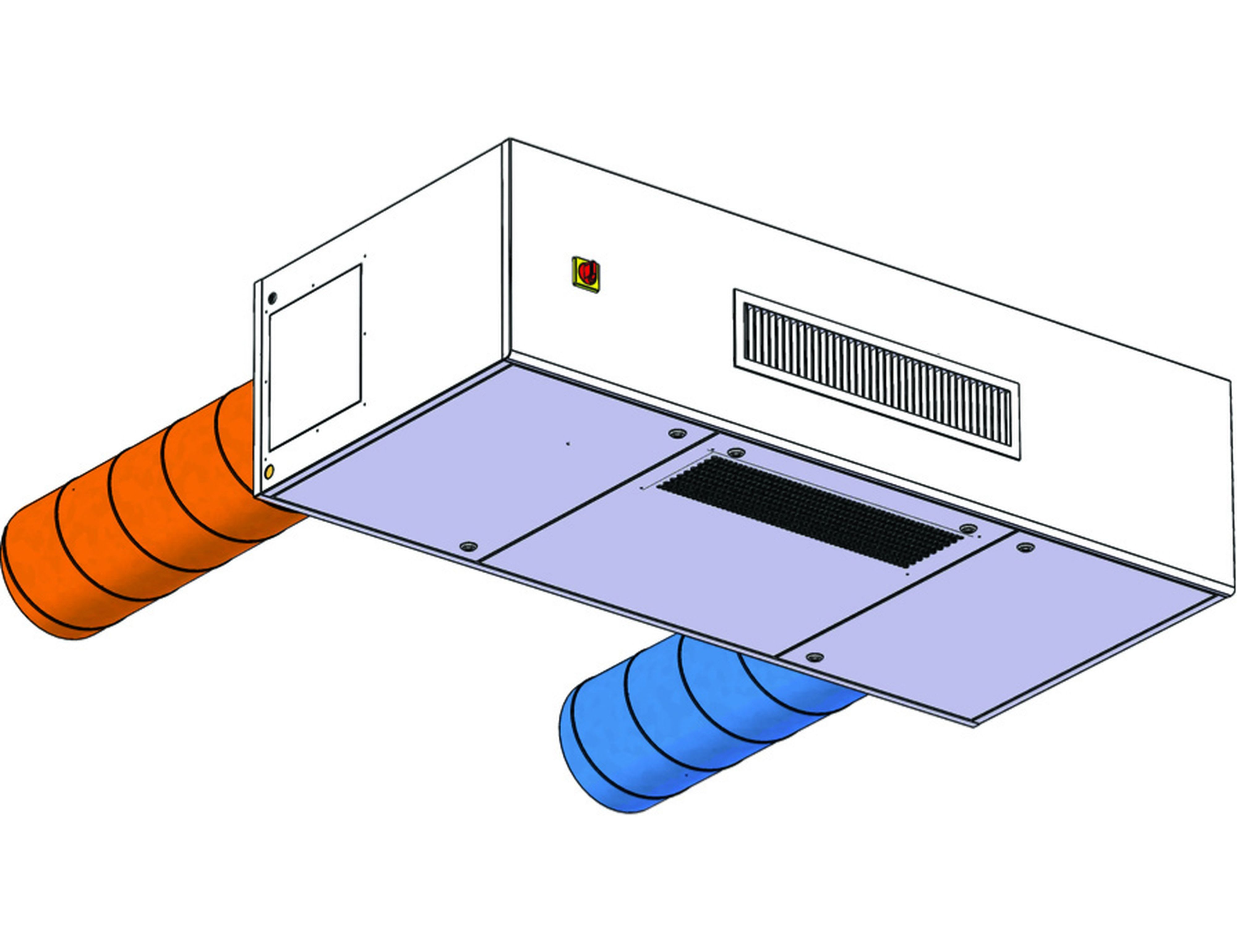 Centrale double flux, de nombreuses configurations possibles des entrées/sorties, faible niveau sonore, adaptée aux établissement scolaire. Version PREMIUM BE DIVA : Batterie de chauffage électrique et régulation sur sonde de CO2. 660 m3/h