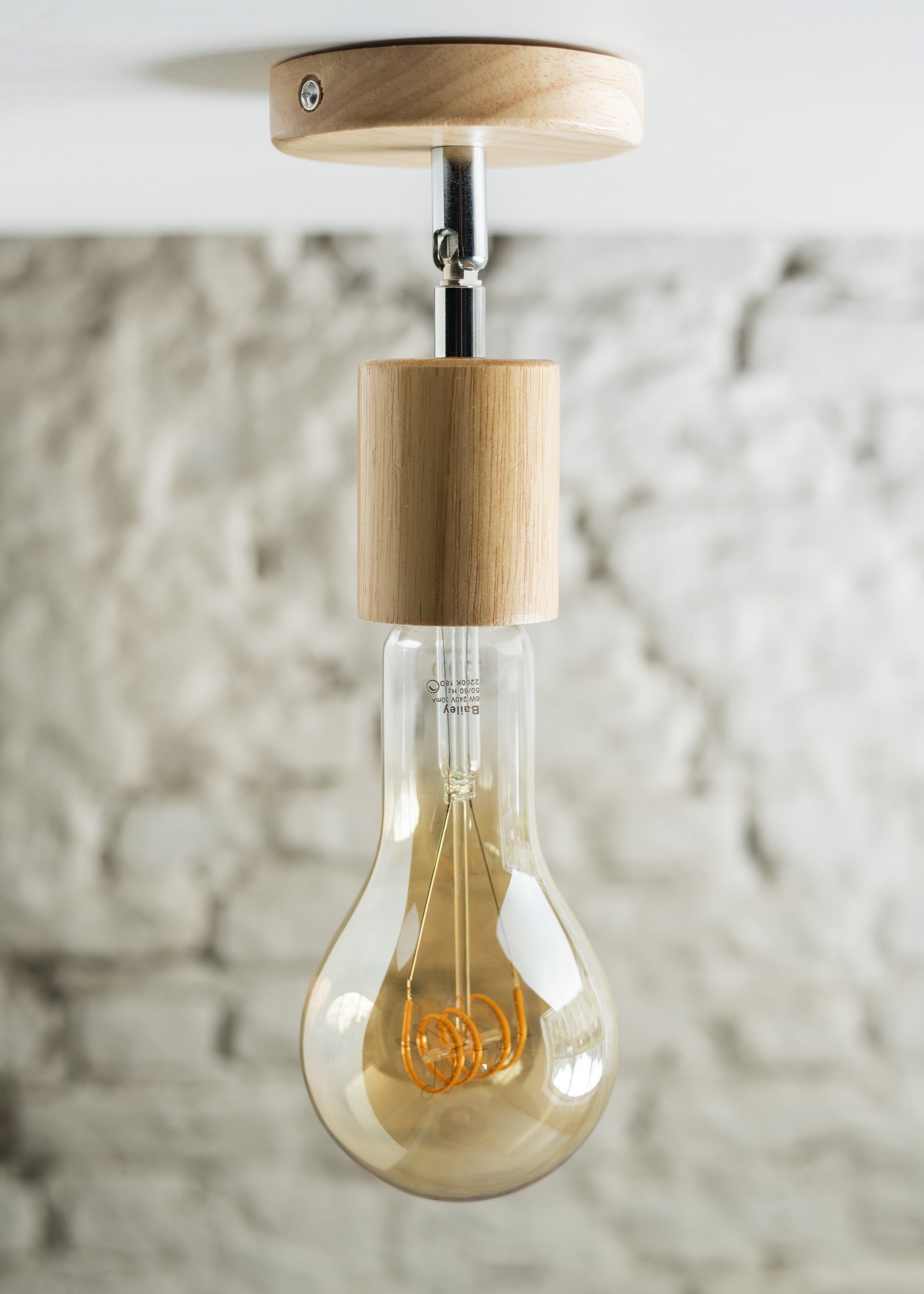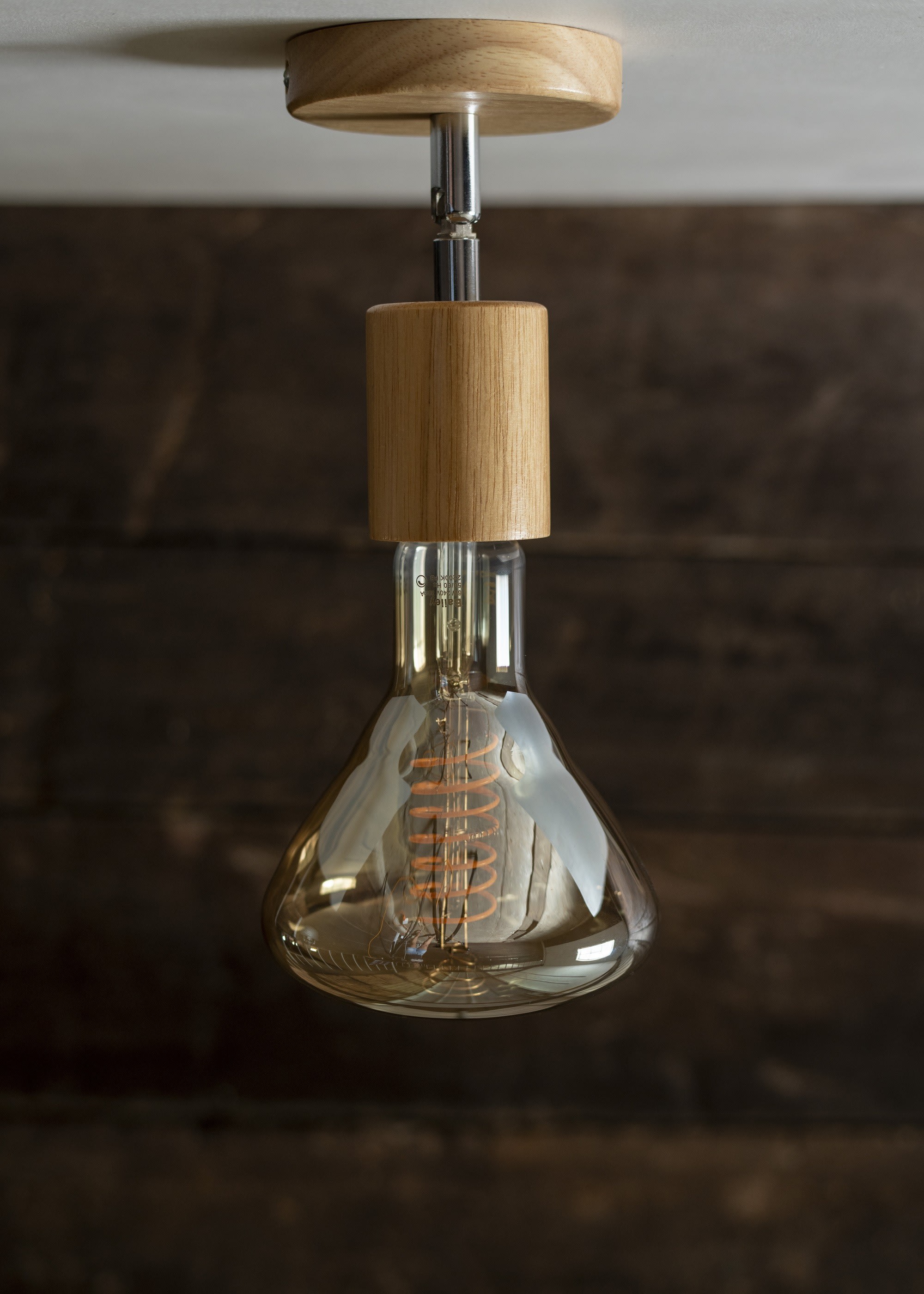 Malgré sa simplicité, ce luminaire mural / plafonnier a une apparence puissante grâce à la finition en bois. L'aspect et la sensation du bois rendent ce luminaire extrêmement adapté aux filaments ST64, Globe et A60 de Bailey sur les lampes Spiraled®