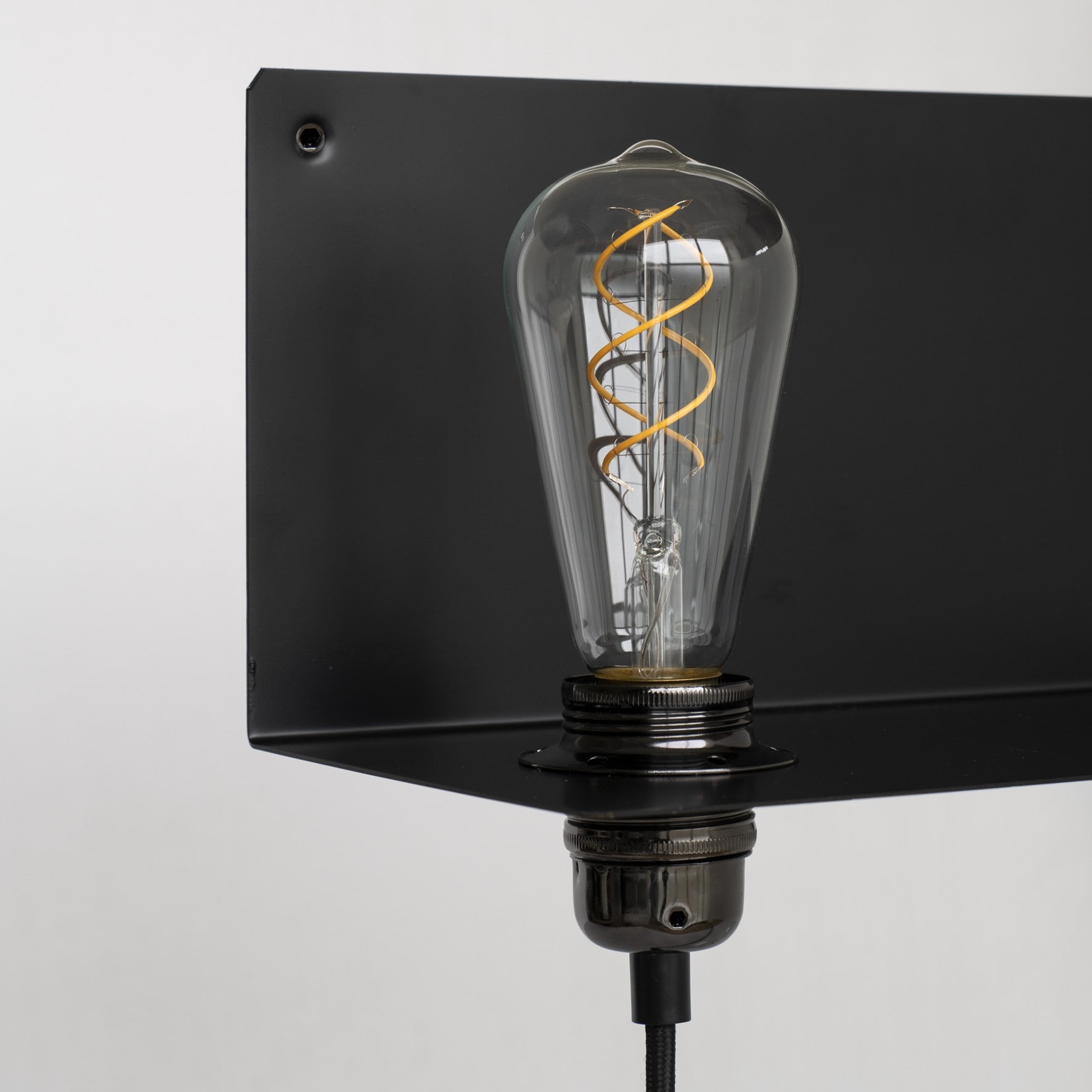 Bailey - Applique Wall Ledge Métal E27 Noir + 1.75m Câble Textile avec interrupteur - 141935
