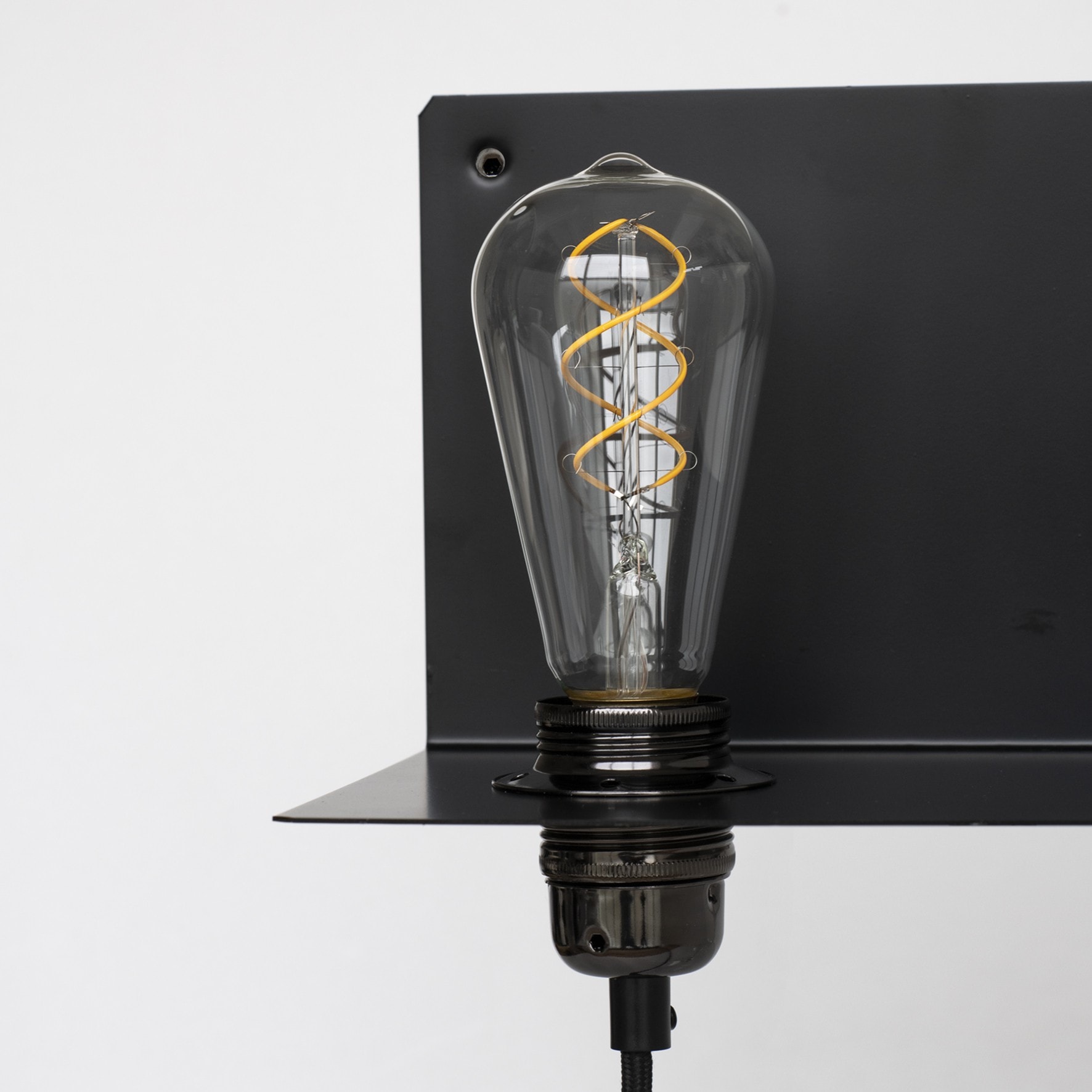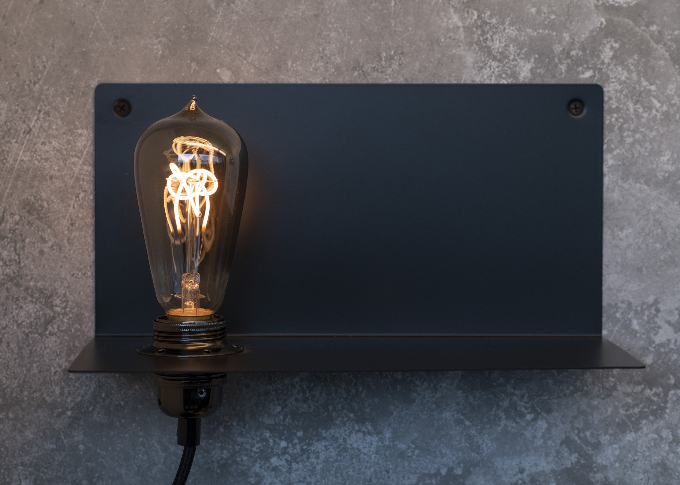 Cette "étagère avec lampe" est magnifique de par sa simplicité et a un look moderne. La base de la lampe et le «rebord» sont de la même couleur. Bien évidemment les jolies ampoules LED au filament de Bailey s'intègrent dans le support E27 pour créer