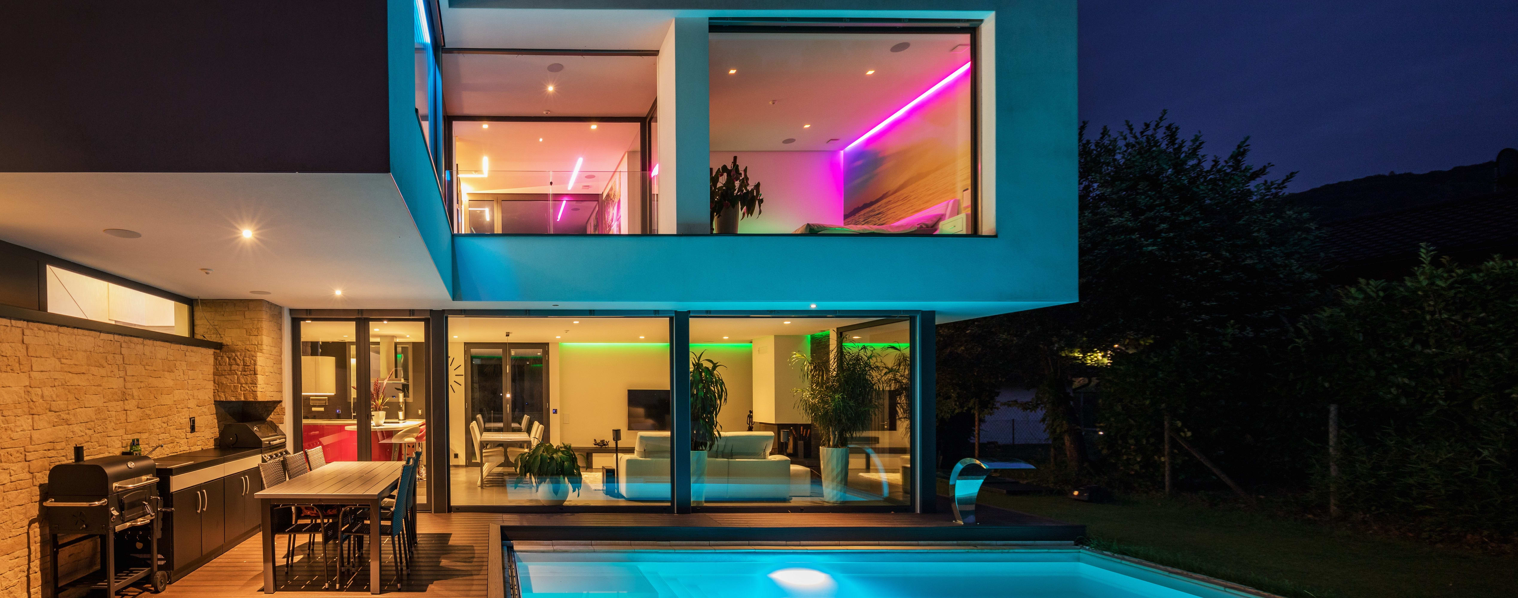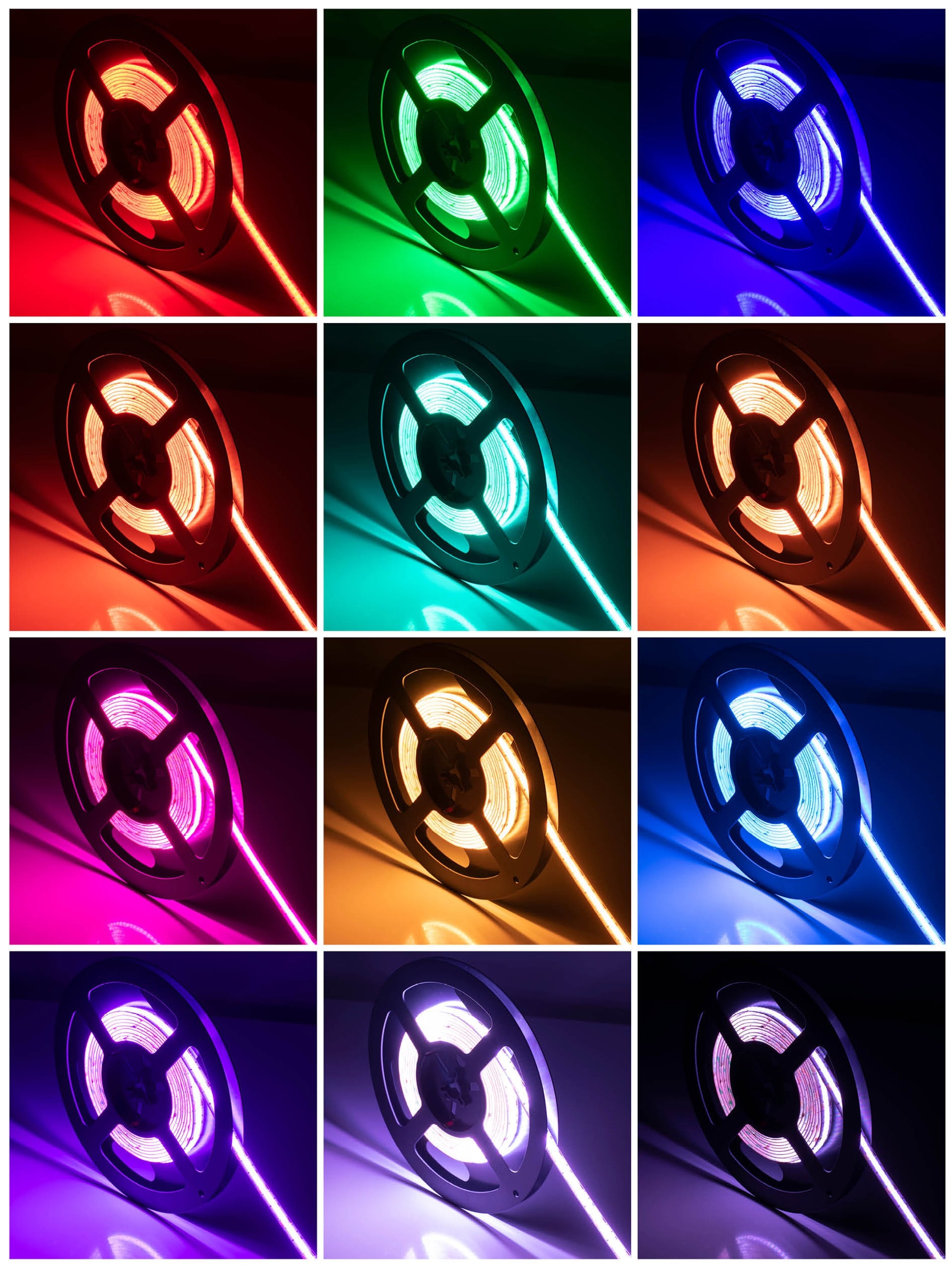"La lumière des Rubans Bailey LED COB est bien uniforme grâce à la technologie COB. Cela signifie que les puces LED sont si proches les unes des autres (840 puces Epistar/mtr) qu'elles ressemblent à une ligne serrée et uniforme. La qualité optique est encore améliorée par un angle de faisceau de 180˚. Ce ruban "RGB" vous permet de passer à de différentes nuances de couleurs à l'aide de la télécommande. Cette télécommande a diverses fonctions, dont certains programmes d'éclairage automatiques. Le produit est classé IP20 et ne convient donc qu'à une utilisation en intérieur. Cet ensemble "plug and play" se compose d'une bande LED de 3 mètres (y compris le ruban adhésif double face 3M), d'un câble de connexion avec adaptateur d'alimentation 24Vdc (IN : 100-240Vac), d'un récepteur et d'une télécommande. Connexion facile sans outils spécifiques."