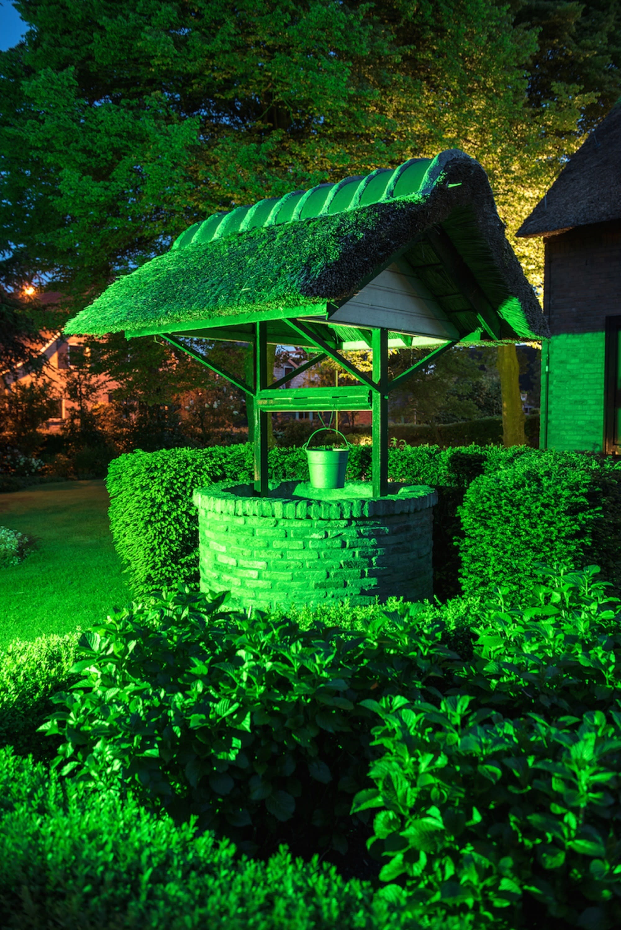 En plus d'une application décorative, ce projecteur convient également parfaitement comme éclairage de sécurité. Avantages du feu vert : Respectueux de l'environnement, moins de pollution lumineuse, meilleur pour la flore et la faune, moins gênant pour
