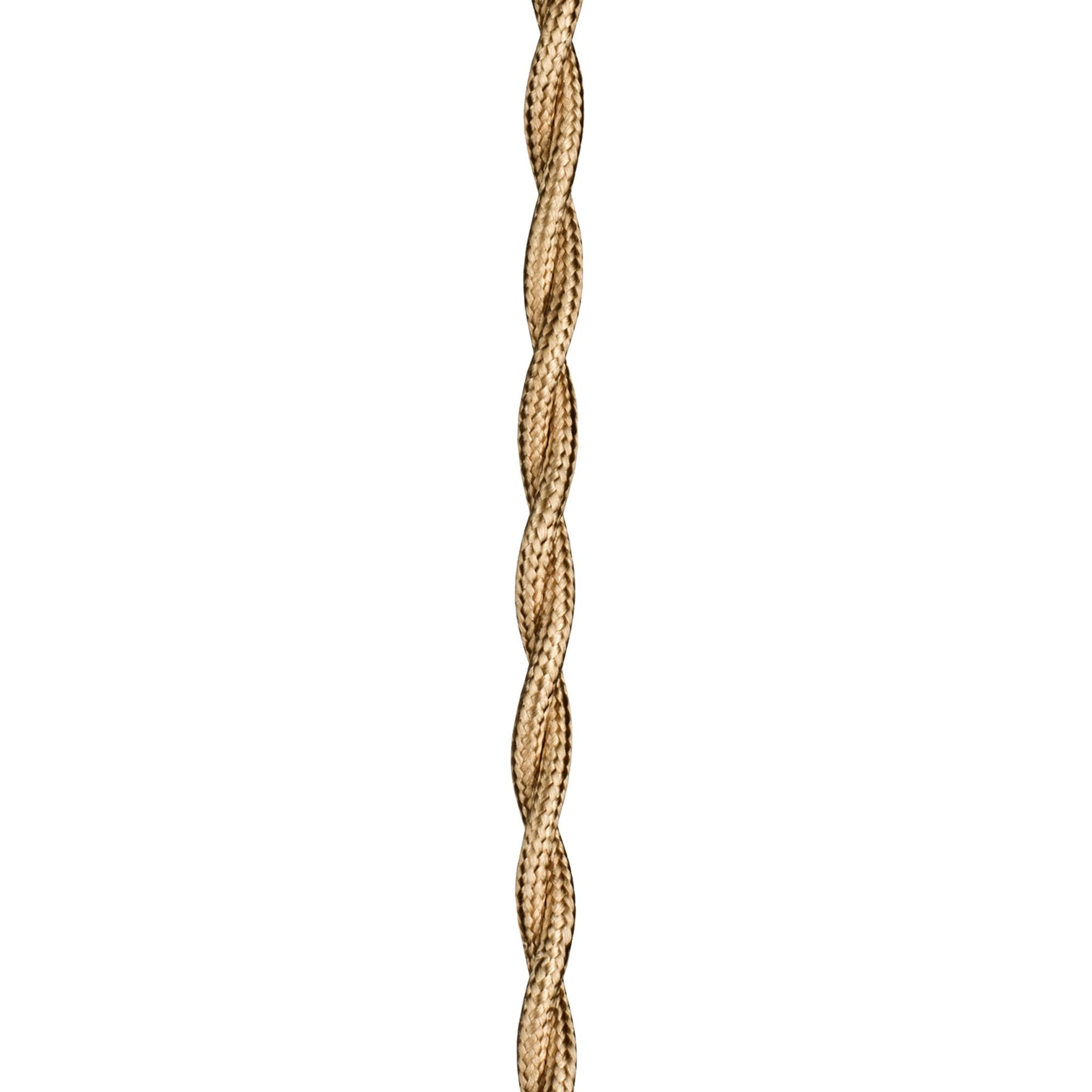 Cordon textile torsadé décoratif à 2 conducteurs. Utilisé pour fixer des luminaires et des lampes. L'aspect métallique offre un cachet extra gracieux. Livré en longueur de 3m.