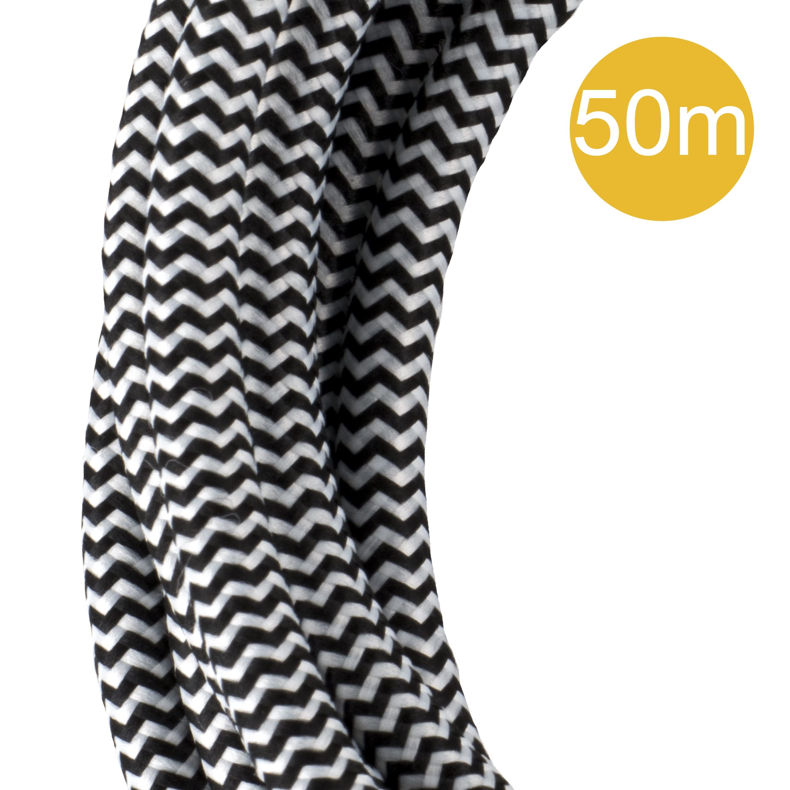 Bailey - Câble Textile Rouleau de 50 mètres Noir/Blanc 2x0.75mm² - 140318