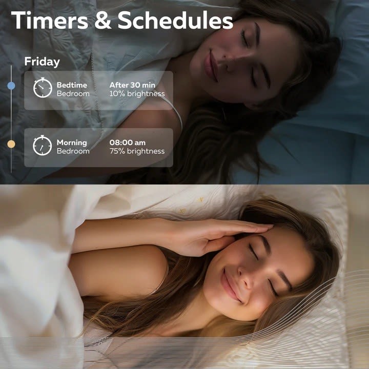Cette lampe modifie facilement la température de couleur via la commande vocale ou l'application gratuite. Passez de la lumière vive du matin à la lumière chaude du soir en un rien de temps pour des soirées agréables. Réglez des minuteries et des