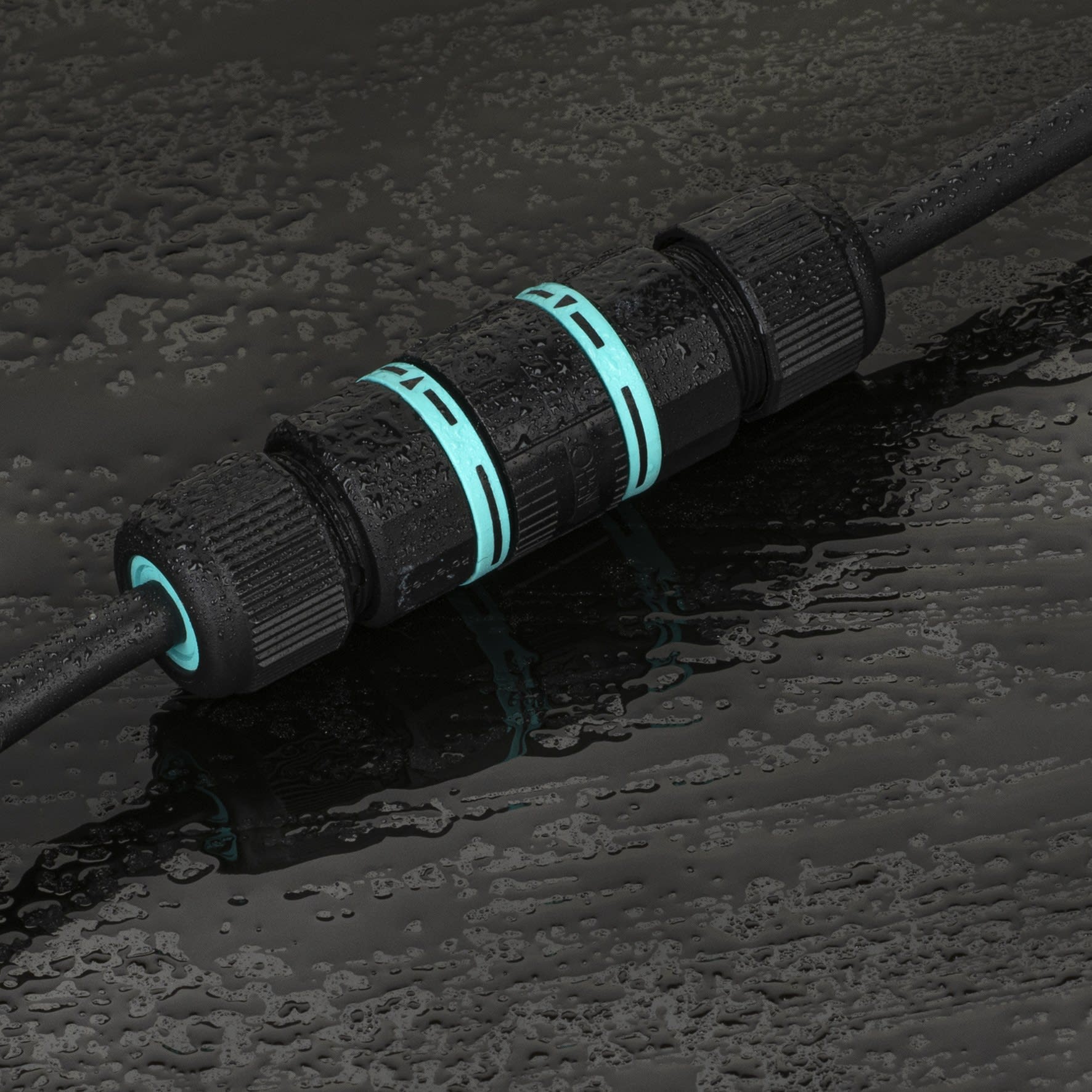 Mini connecteur de câble étanche IP68 enfichable, équipé de fiche mâle et prise femelle. IMPORTANT : pour des raisons de sécurité, la tension ne doit être connectée qu'à la prise femelle enfichable. Section de fil (câble toronné) 0,25 mm2-1,5 mm2.