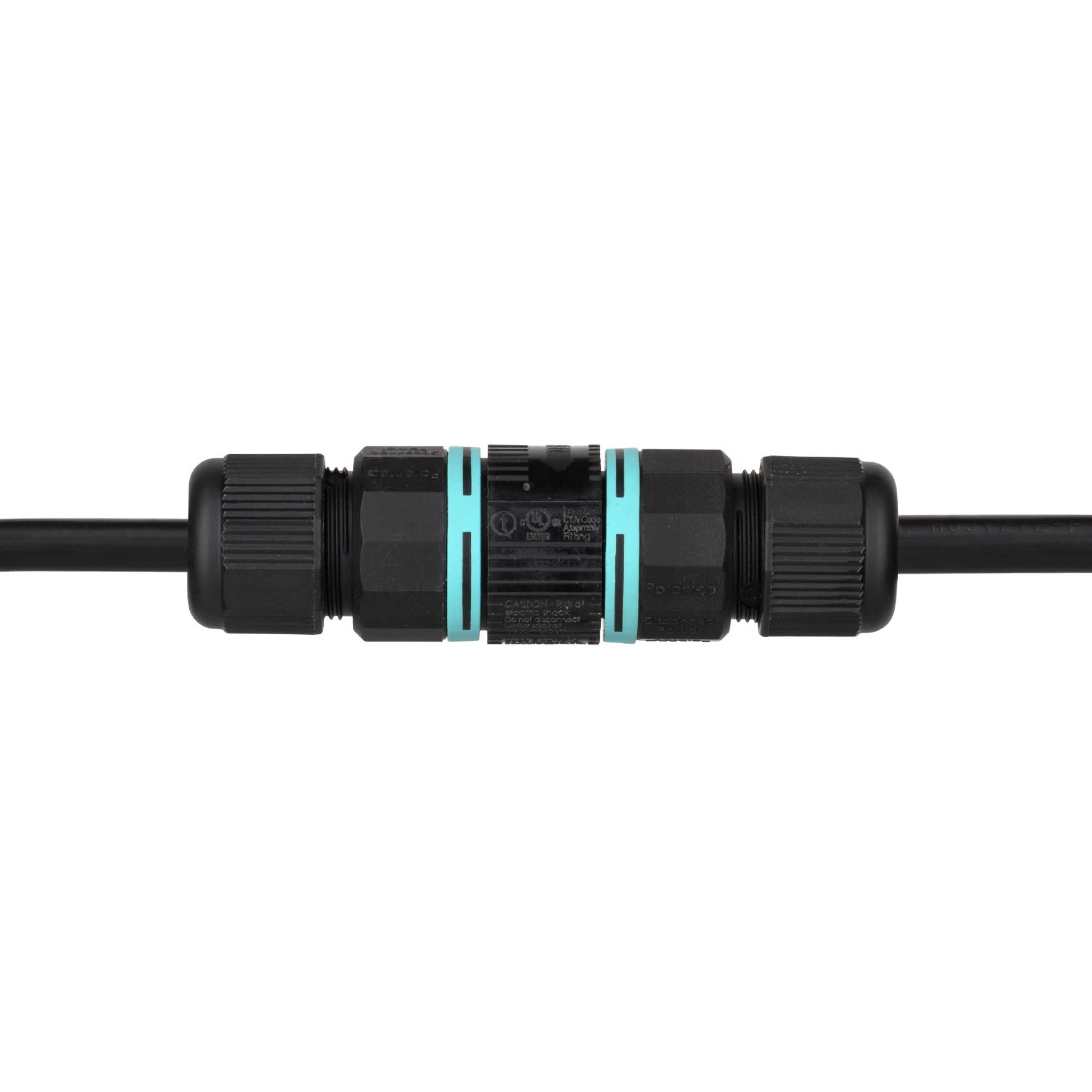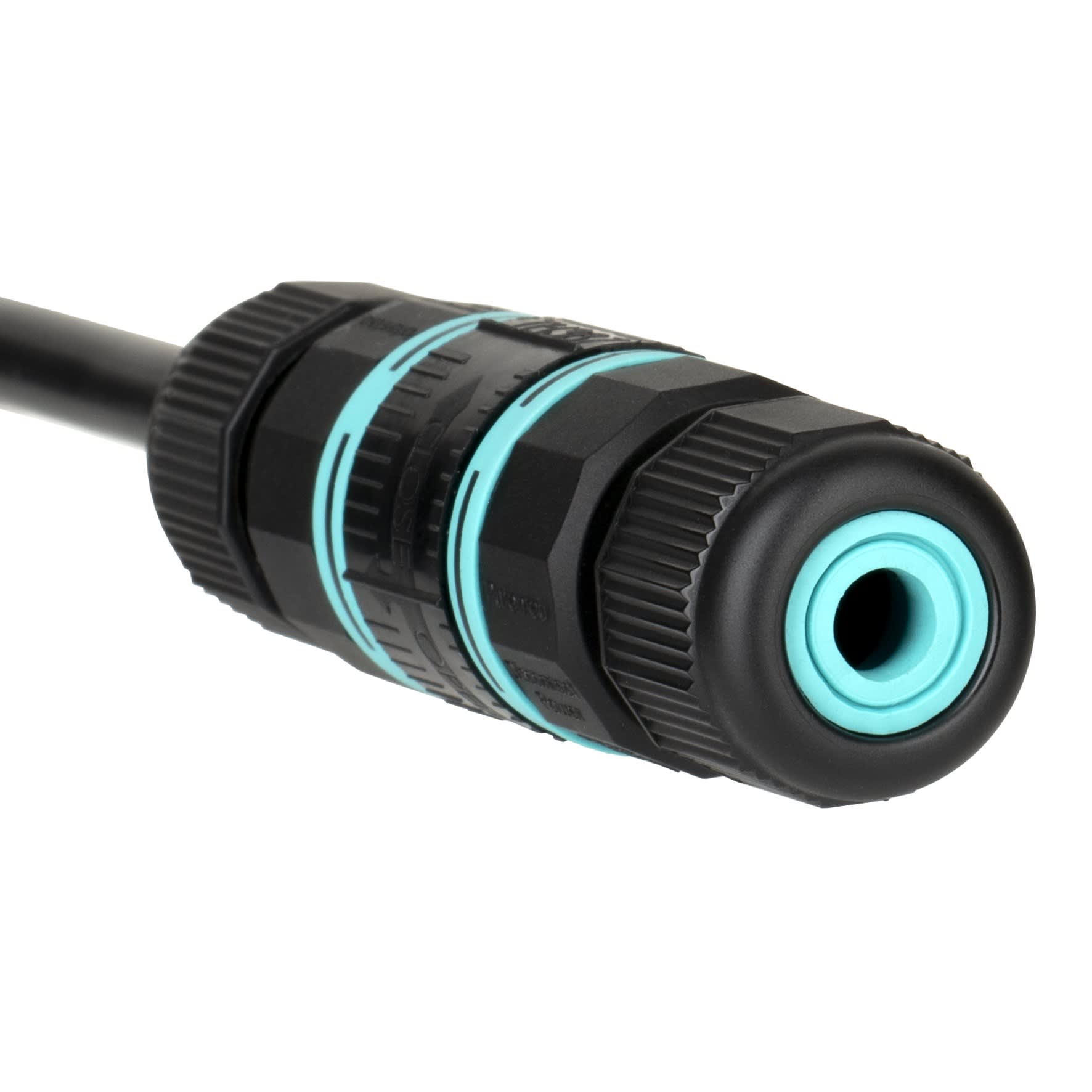 Mini connecteur de câble étanche IP68 enfichable, équipé de fiche mâle et prise femelle. IMPORTANT : pour des raisons de sécurité, la tension ne doit être connectée qu'à la prise femelle enfichable. Section de fil (câble toronné) 0,25 mm2-1,5 mm2.