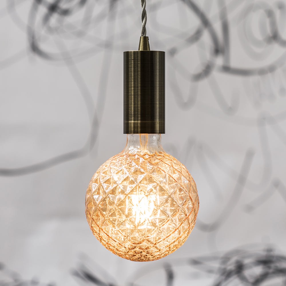 Douille E27 décoratif élégant en aluminium avec un intérieur en plastique. Adaptée aux lampes a culot E27. Avec serre-câble.
