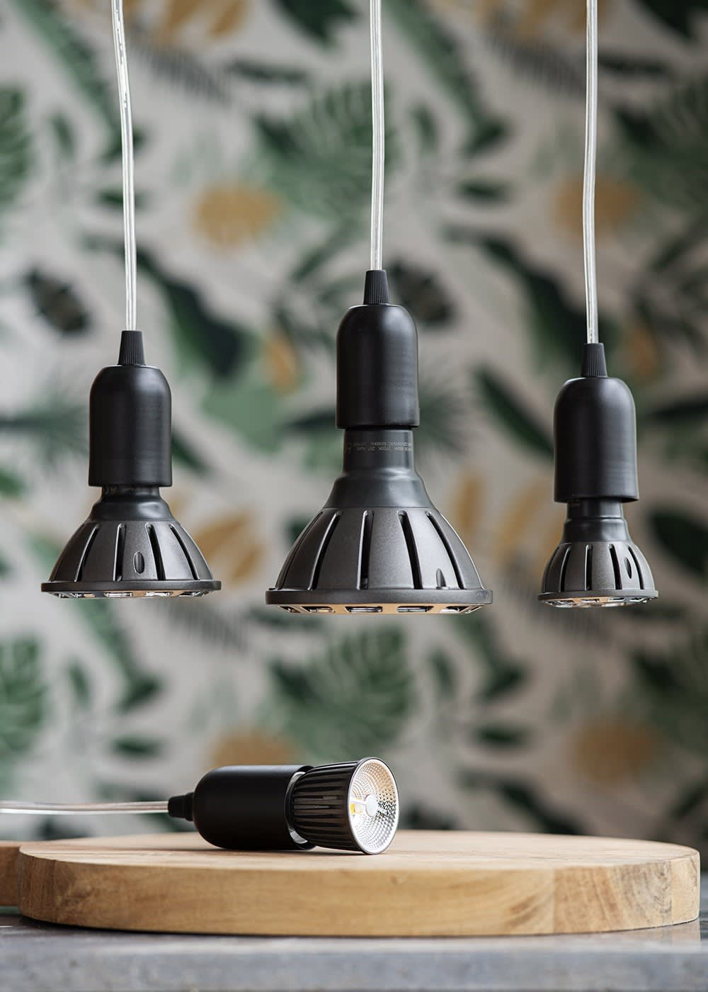 Douille E27 décoratif élégant en aluminium avec un intérieur en plastique. Adaptée aux lampes a culot E27. Avec serre-câble.