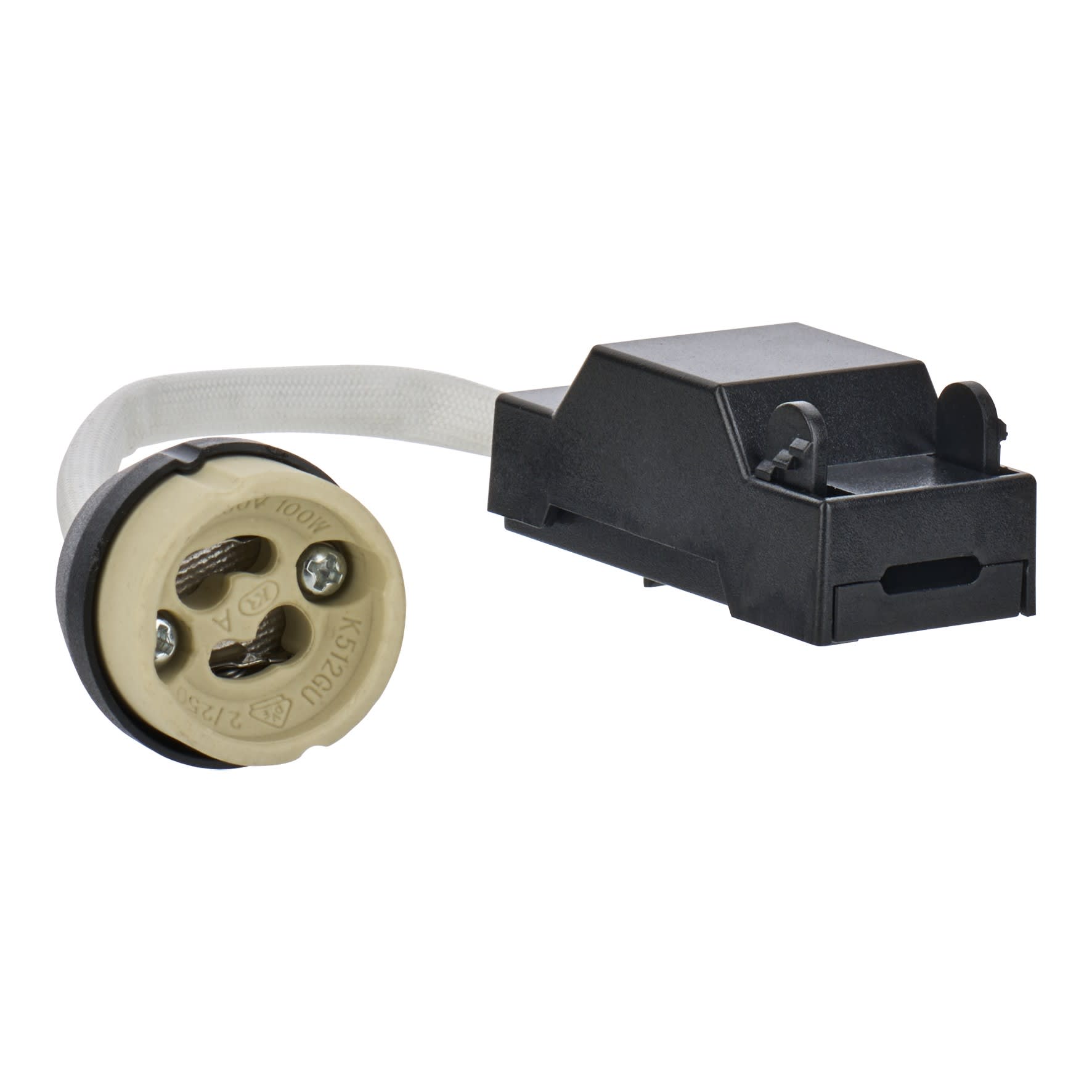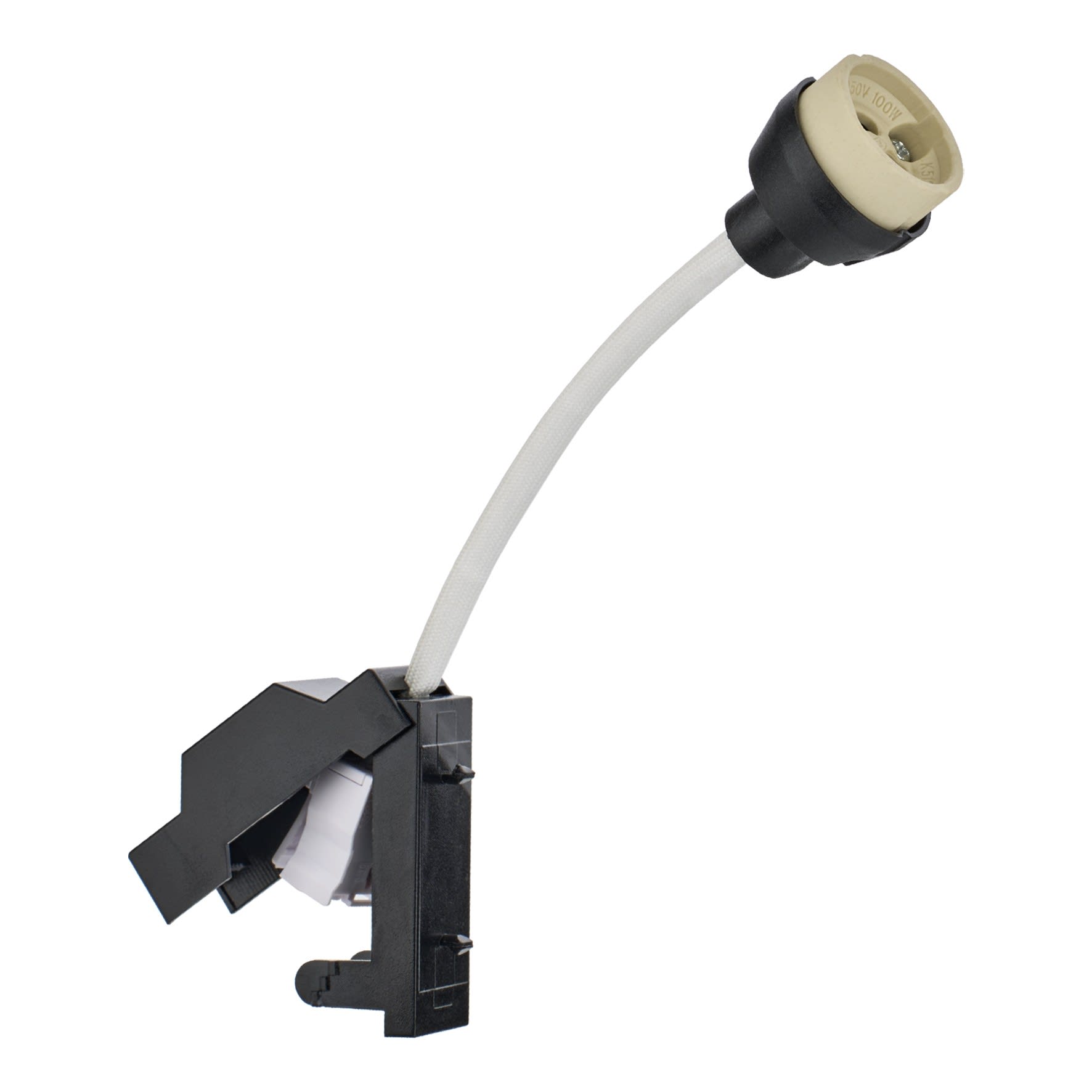 Douille en céramique résistante à la chaleur pour lampes halogènes et LED haute tension avec boîte de connexion et pince rapide.