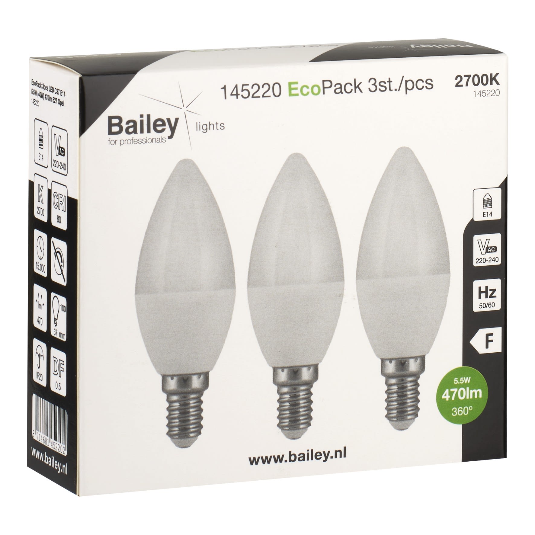 Bailey - EcoPack 3pcs Ecobasic LED Flamme C37 E14 5.5W 2700K Opale 470lm (40W) 230V - 145220