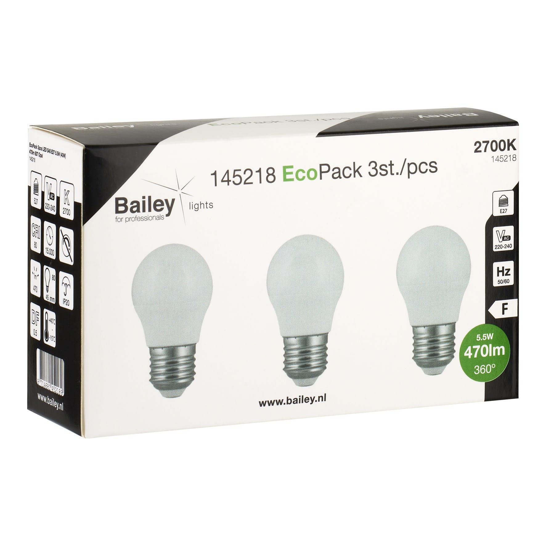 Bailey - EcoPack 3pcs Ecobasic LED Sphérique G45 E27 5.5W 2700K Opal 470lm (40W) 230V - 145218