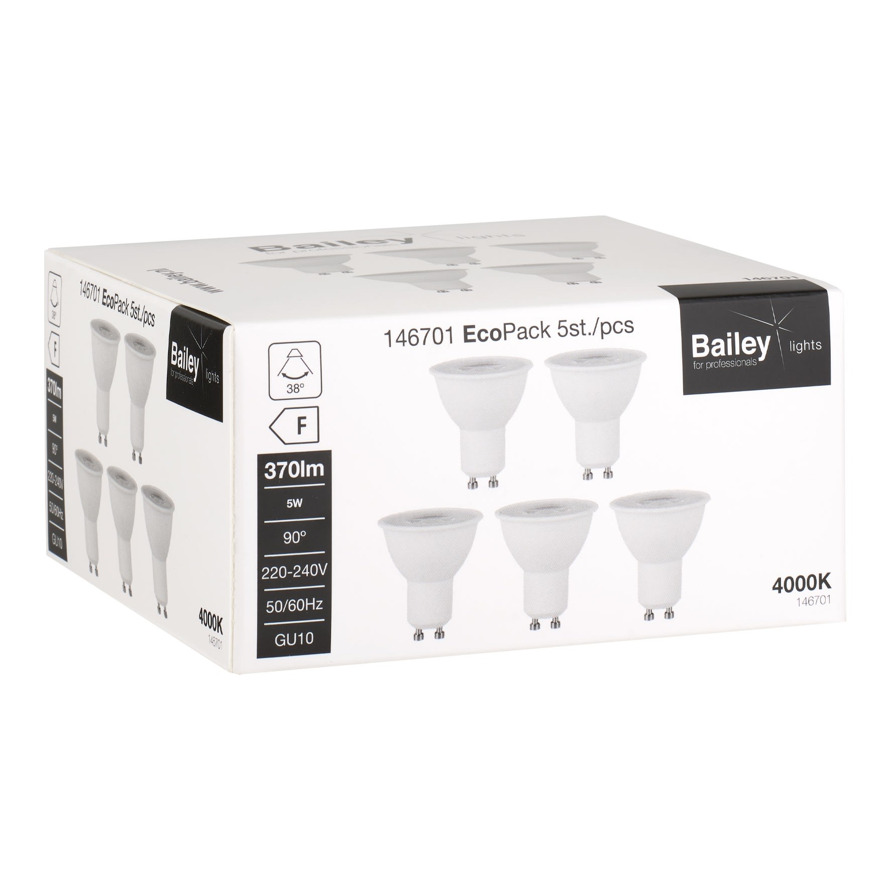 Bailey - EcoPack 5pcs LED PAR16 GU10 5W 4000K 370lm (50W) 220V-240V 50x56mm 38° - 146701