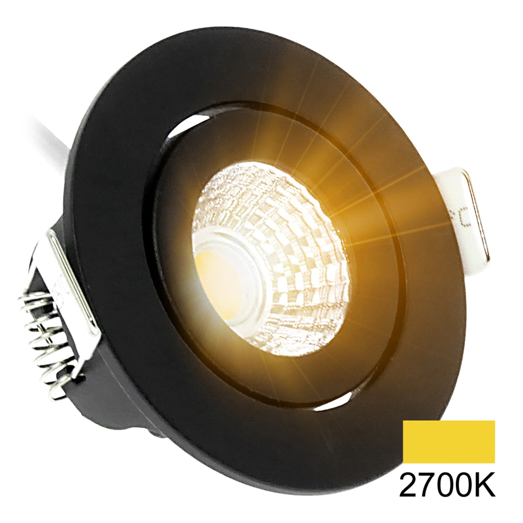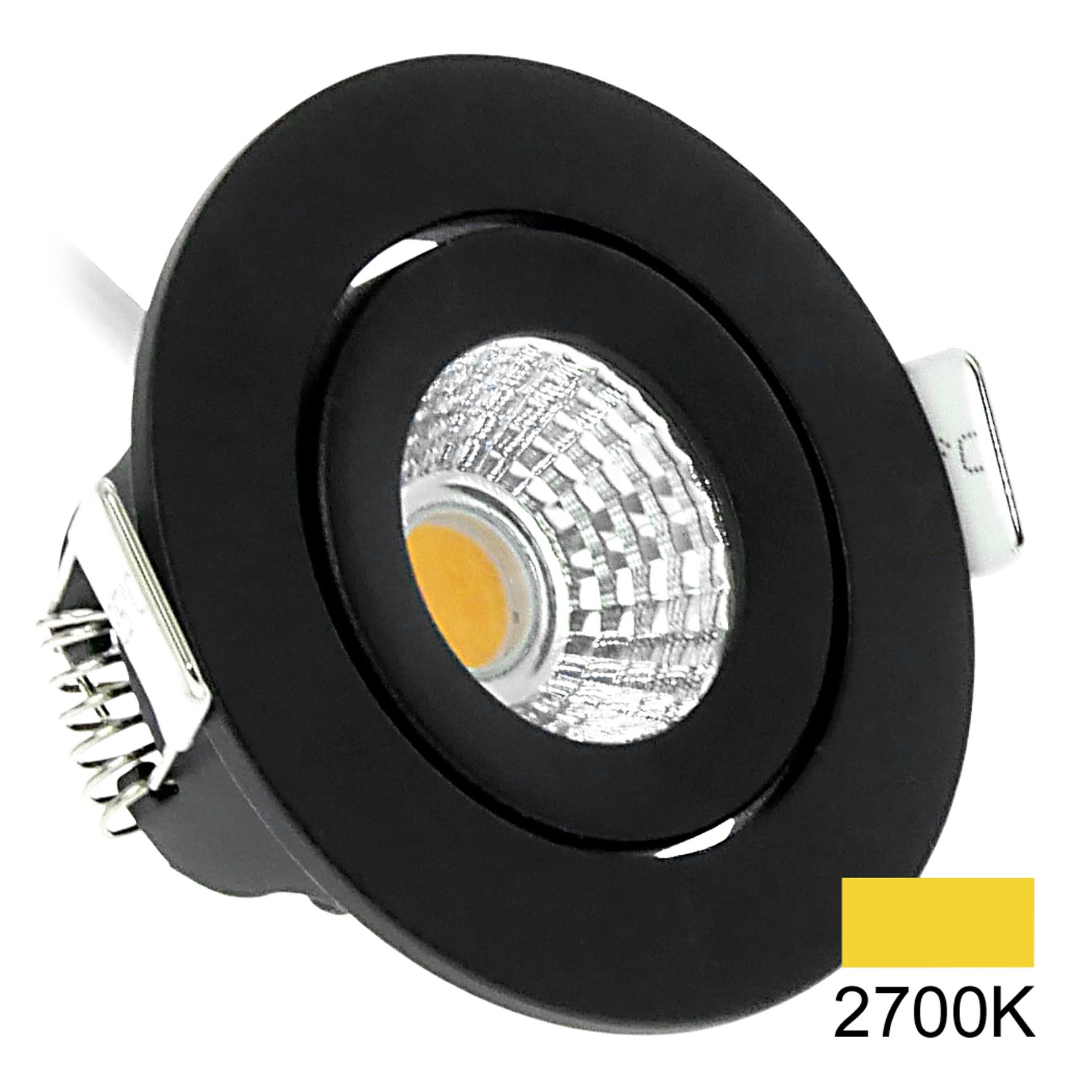 Les caractéristiques les plus importantes de ce spot encastrable LED rond noir avec une taille de découpe de 55 mm sont la valeur IP54 (résistant aux éclaboussures), la faible profondeur d'encastrement (23 mm) et l'excellente intensité variable. La