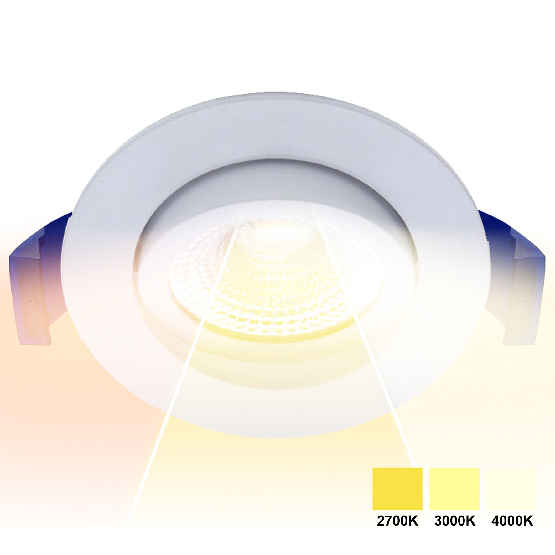 Ce spot encastrable LED rond blanc est protégé contre les éclaboussures (IP65, adapté à la salle de bain) et possède une faible profondeur d'encastrement de seulement 23 mm. L'excellente variabilité et le simple chaînage en série à 2 fils sont uniques