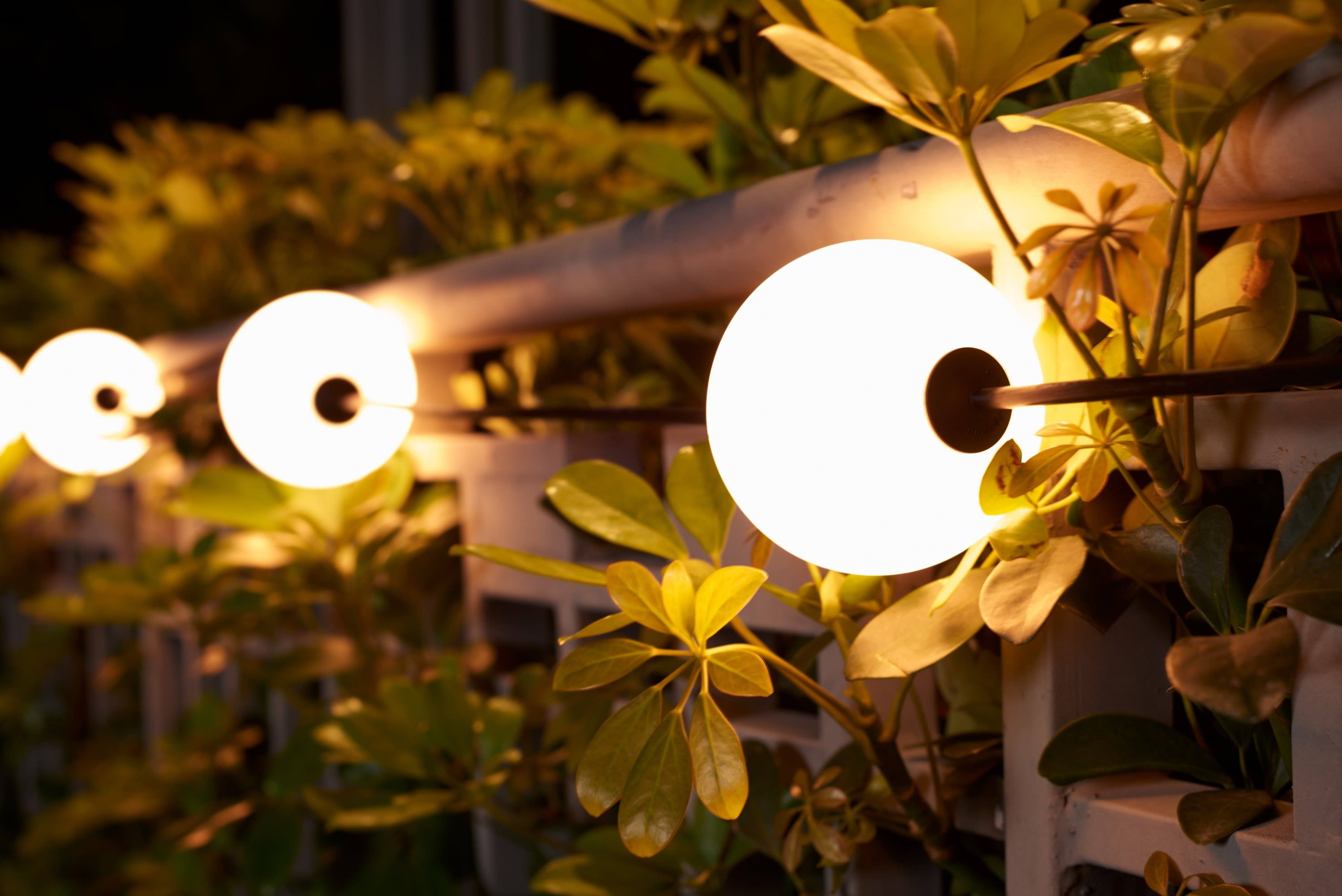 Bailey Lights ajoute une nouvelle dimension dans l'éclairage festif et décoratif avec la gamme LED Party Balls. 10 globes en plastiques de diamètre 10cm sont centrés sur une guirlande de 7.70 mètres (46cm entre chaque globe). Teintés en blanc opale, ces