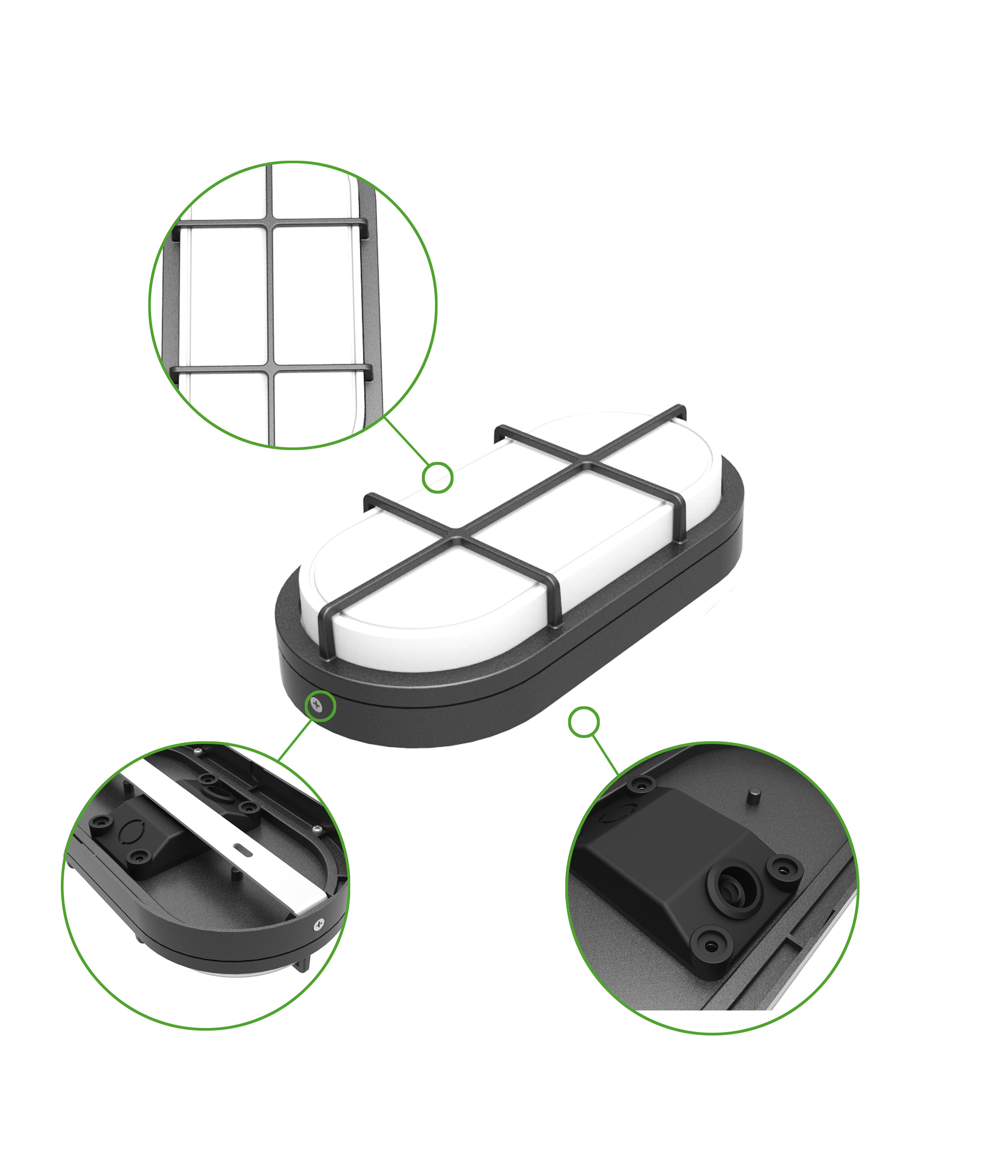 Cet hublot Slim Ovale est également connu sous le nom de bulleye ou bulkhead. Avec une classification IK10 ce luminaire est résistant aux chocs et au vandalisme, ce qui le rend idéal pour les vérandas, le montage côté rue et dans les espaces publics. Le