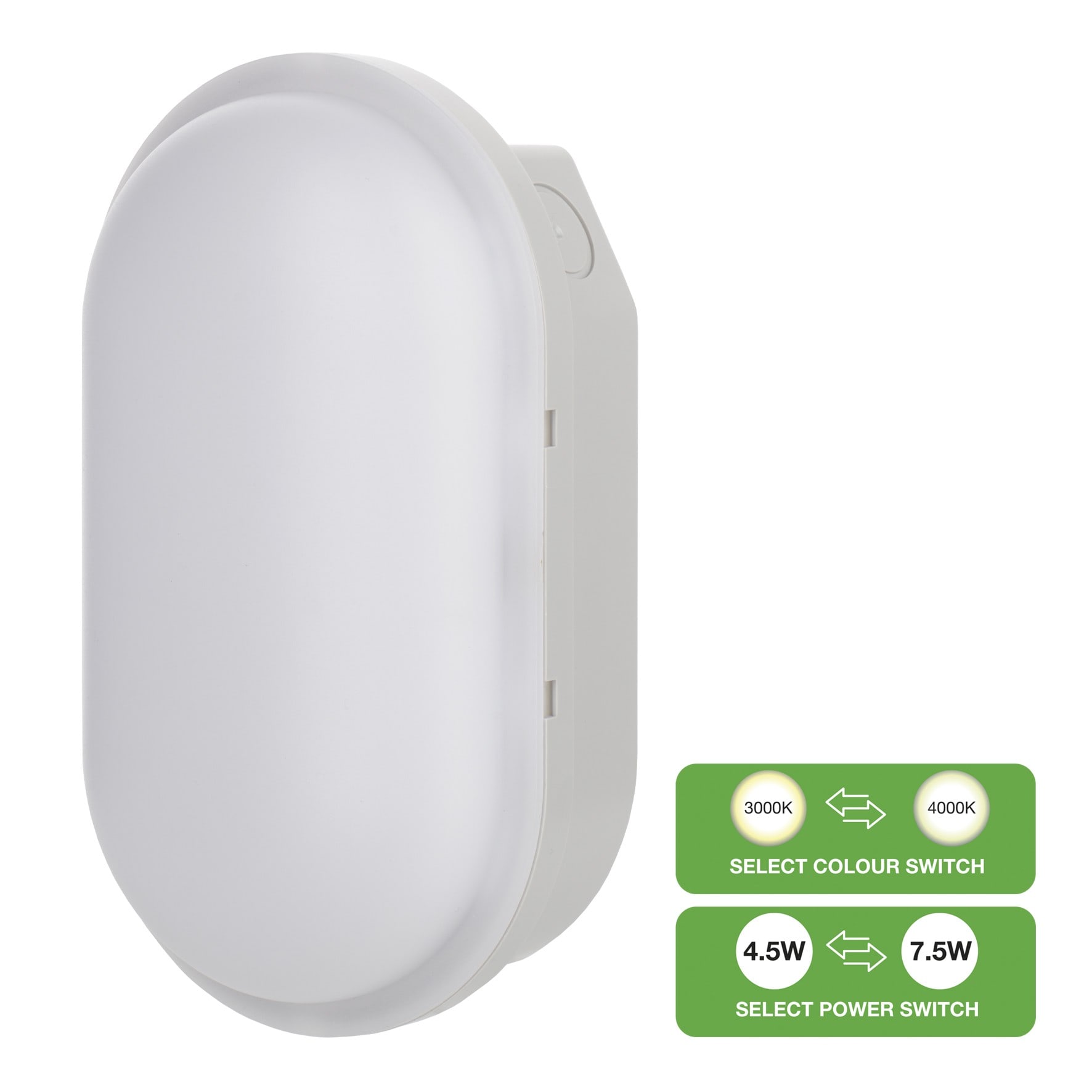 Bailey - Hublot LED Switch CCT Ovale 4.5W-7.5W 420-750lm IP54 3000K-4000K Gris/Blanc - 146041
