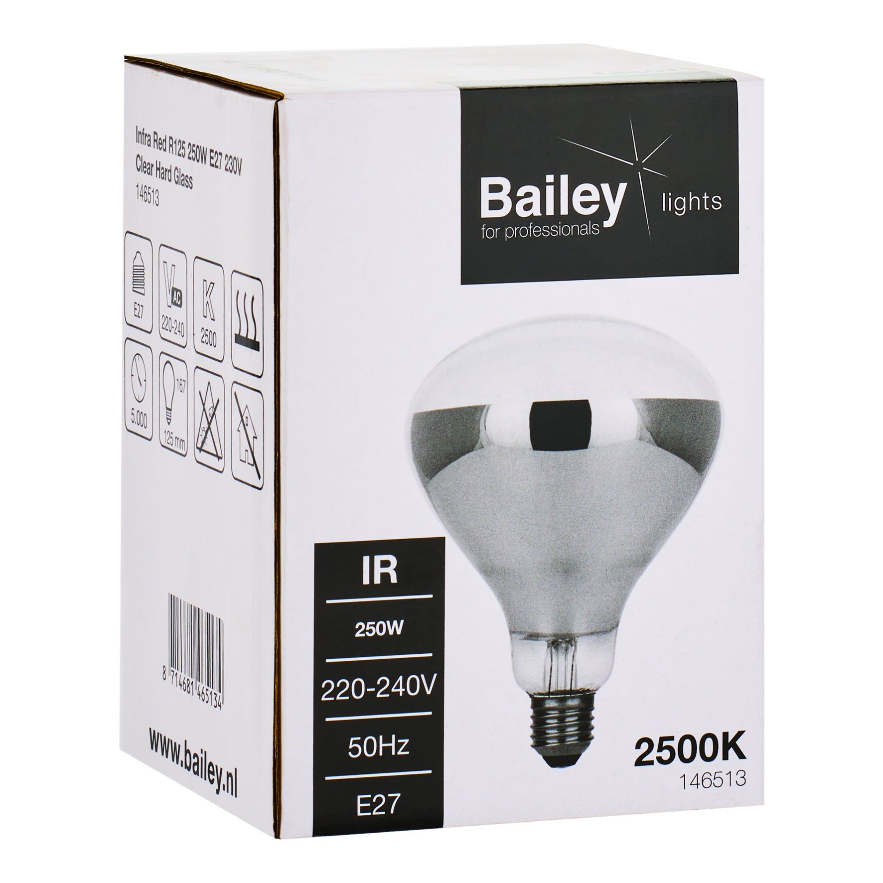 Bailey - Infrarouge IR Hard Glass R125 E27 240V 250W 2500K Clair Culot vers le haut - 146513