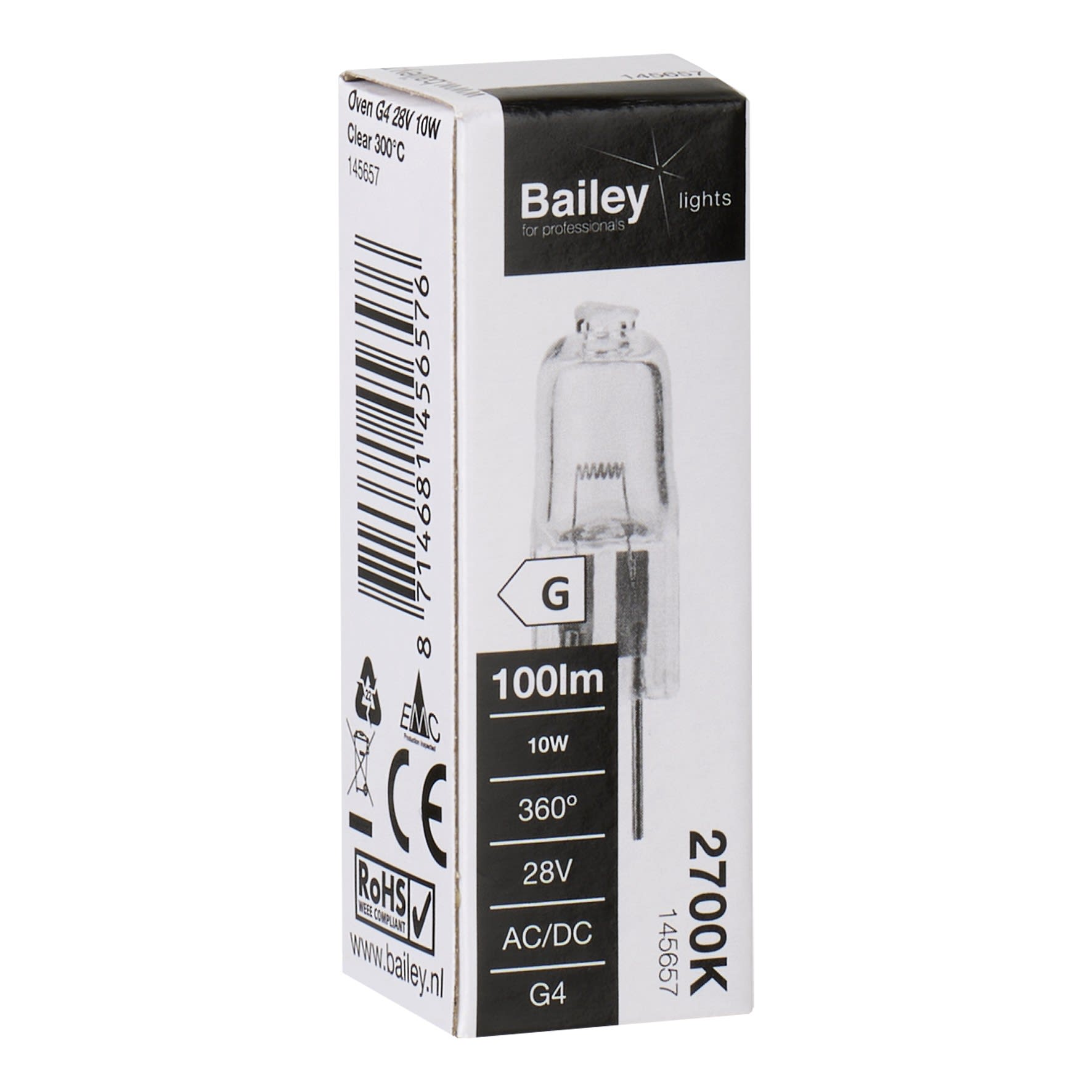 Bailey - Lampe halogène pour four 300°C G4 8x30mm 28V 10W 100lm Clair 1000h - 145657
