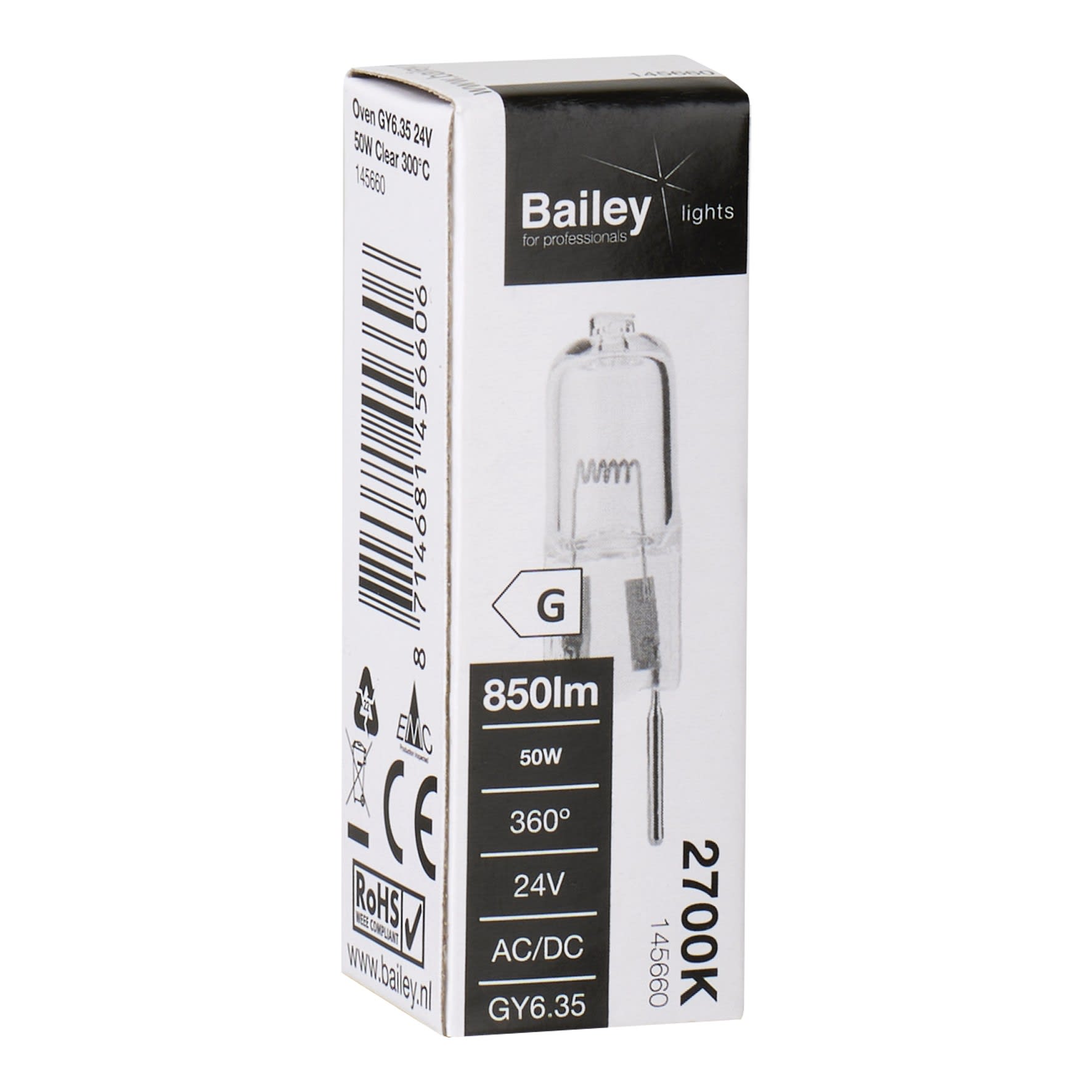 Bailey - Lampe halogène pour four 300°C GY6.35 11x33mm 24V 50W 850lm Clair 1000h - 145660