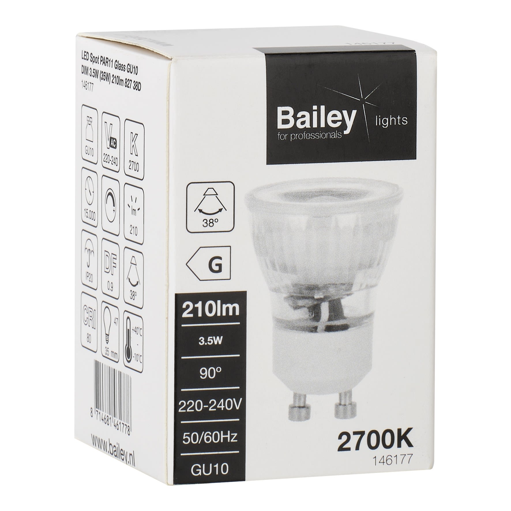 Bailey - Lampe LED MR11 GU10 3.5W 2700K 38° 210lm (35W) Réflecteur Verre 230V Dimmable - 146177